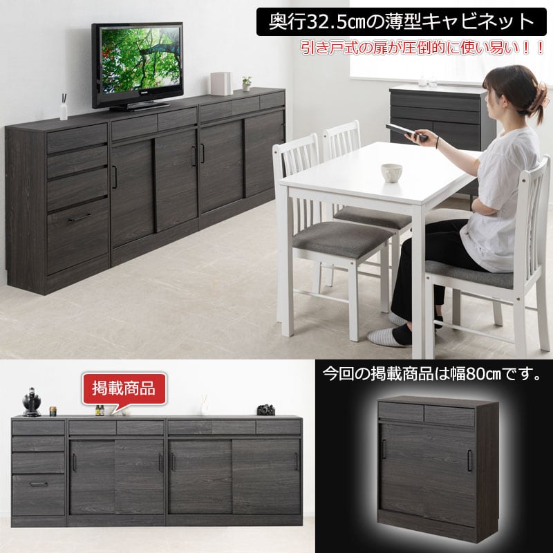 キャビネットカウンター下収納 幅80cm ブラック 背面化粧 引き戸 ラック 間仕切り 木製 グレー 黒木目 A4収納 薄型 ランドリー サイドボード blacker