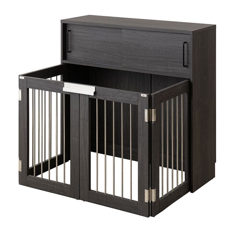 ケージ 折りたたみ型 カウンター下収納 幅90cm ブラック 背面化粧仕上げ ペットサークル 省スペース 小型犬 中型犬 室内サークル ルームゲージ blacker