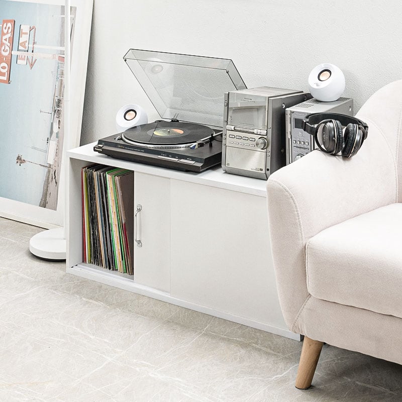 キャビネット 上置き レコードラック 引戸式 レコード収納 レコード棚 lp 木製 ターンテーブル 台 レコードプレーヤー台 ホワイト ブラウン whitv
