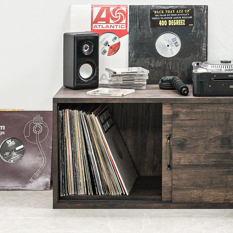レコードも100枚以上の大量収納可能で、オーディオ関連のストックにも使える。
