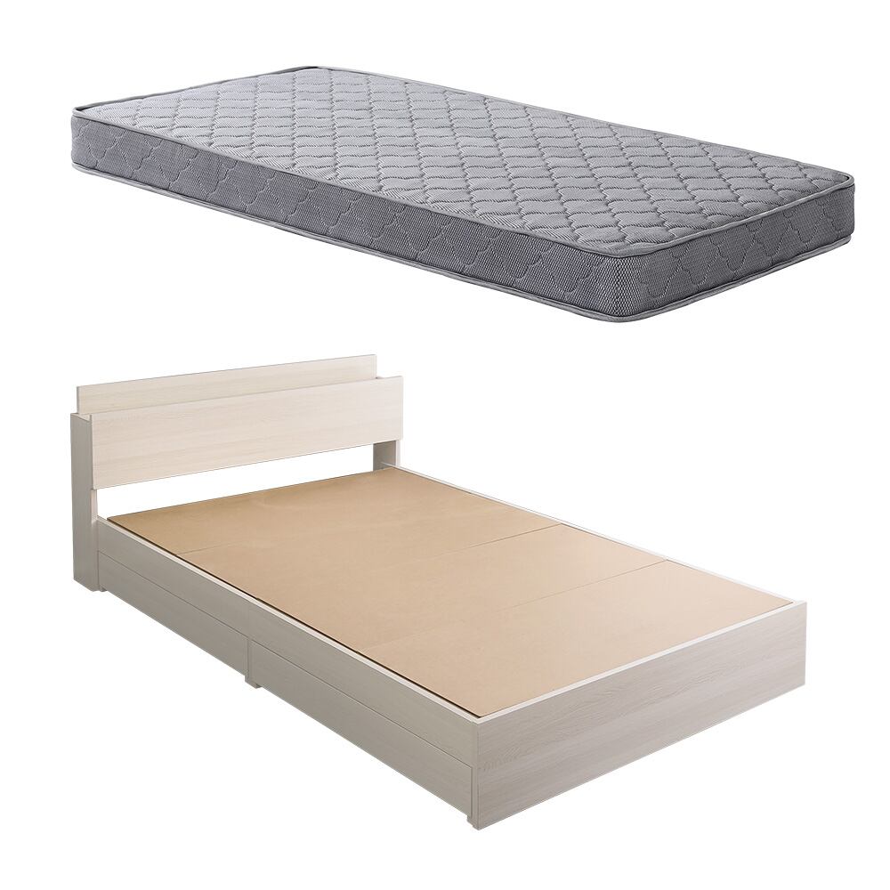 チェストベッド ボンネルコイルマットレスセット (シングル) 木目調 オーク色 全4色 宮付 棚・コンセント付き 引出し収納ベッド 抗菌・防臭