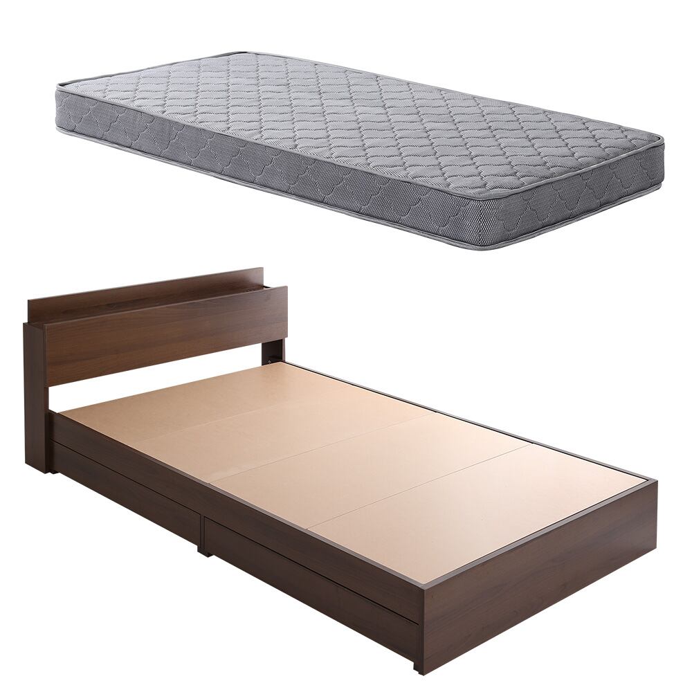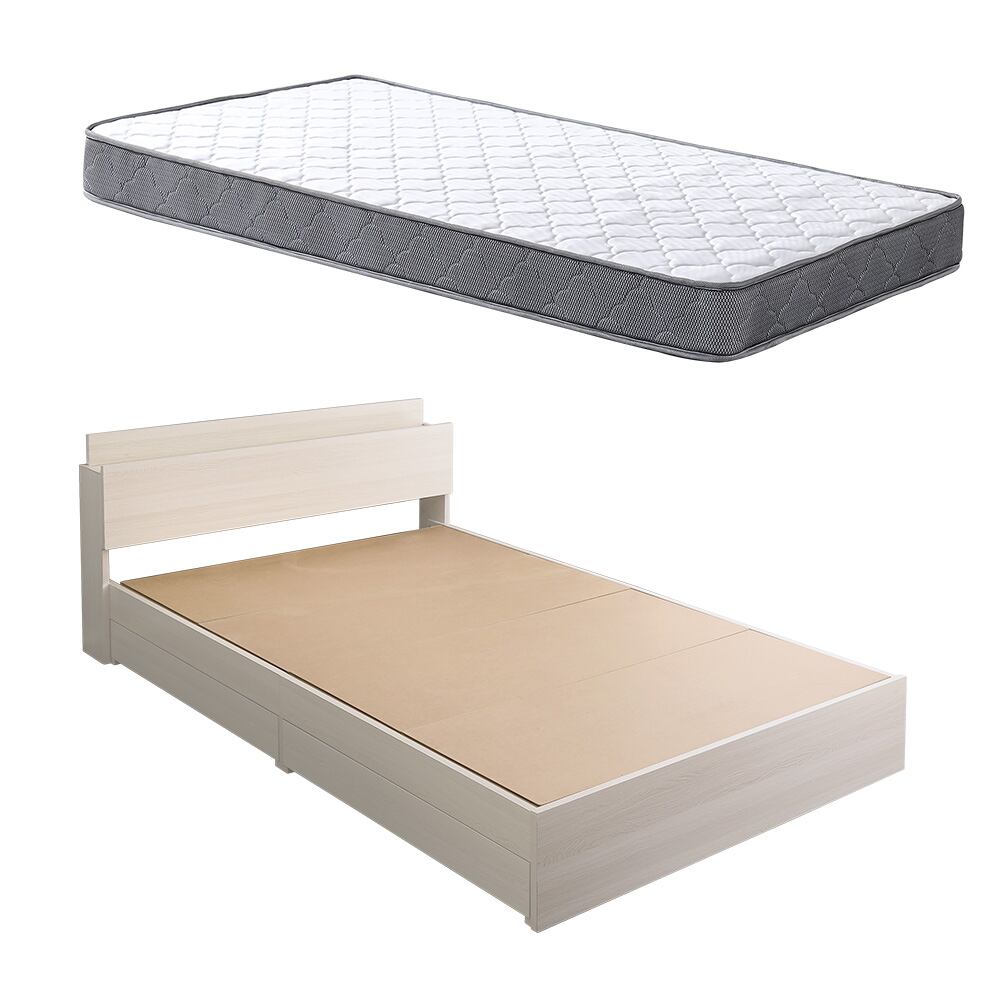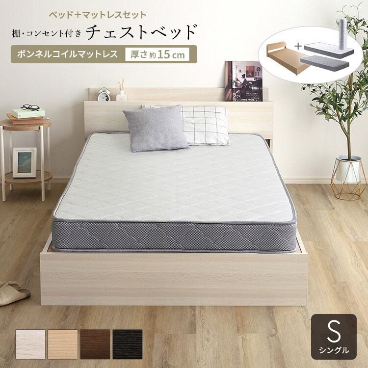 チェストベッド ボンネルコイルマットレスセット (シングル) 木目調 ホワイトオーク色 全4色 宮付 棚・コンセント付き 引出し収納ベッド 抗菌・防臭
