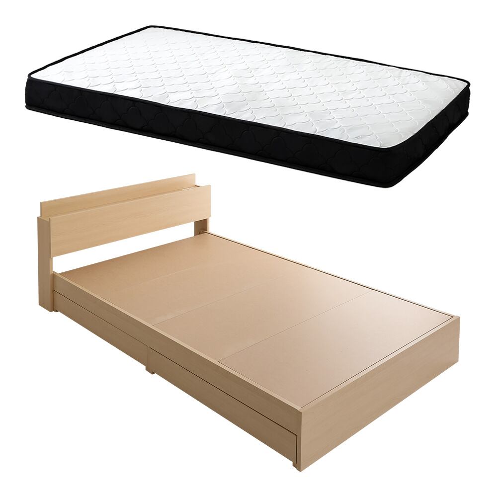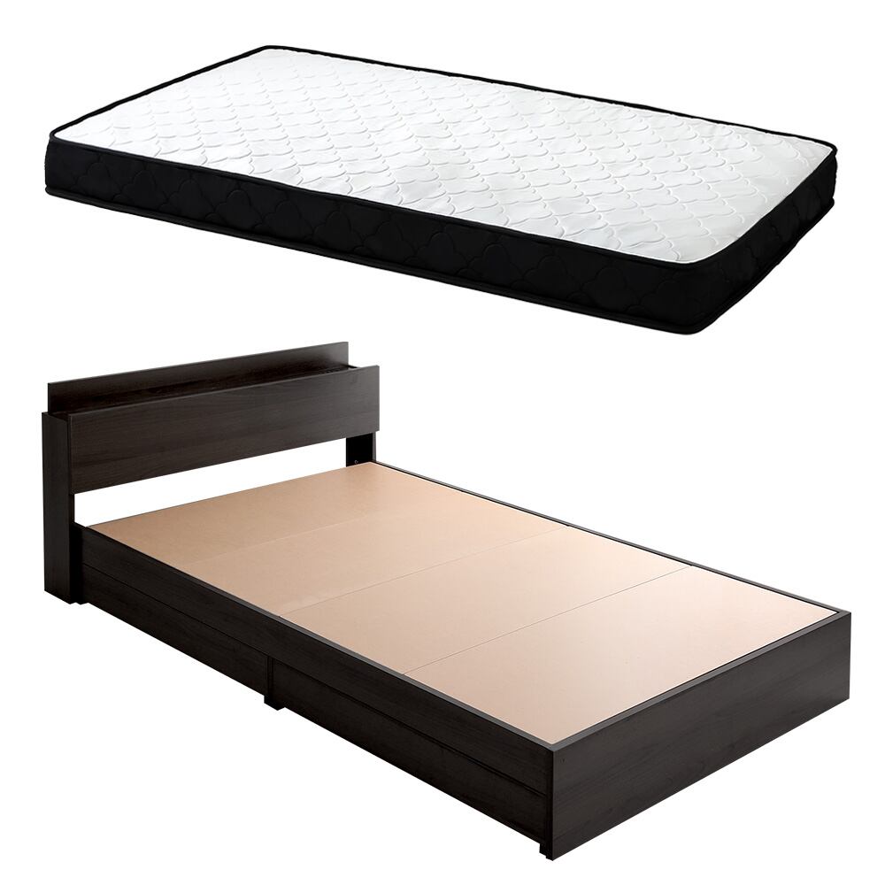 チェストベッド ポケットコイルマットレスセット (シングル) 木目調 ウォールナット色 全4色 宮付 棚・コンセント付き 引出し収納ベッド 抗菌・防臭