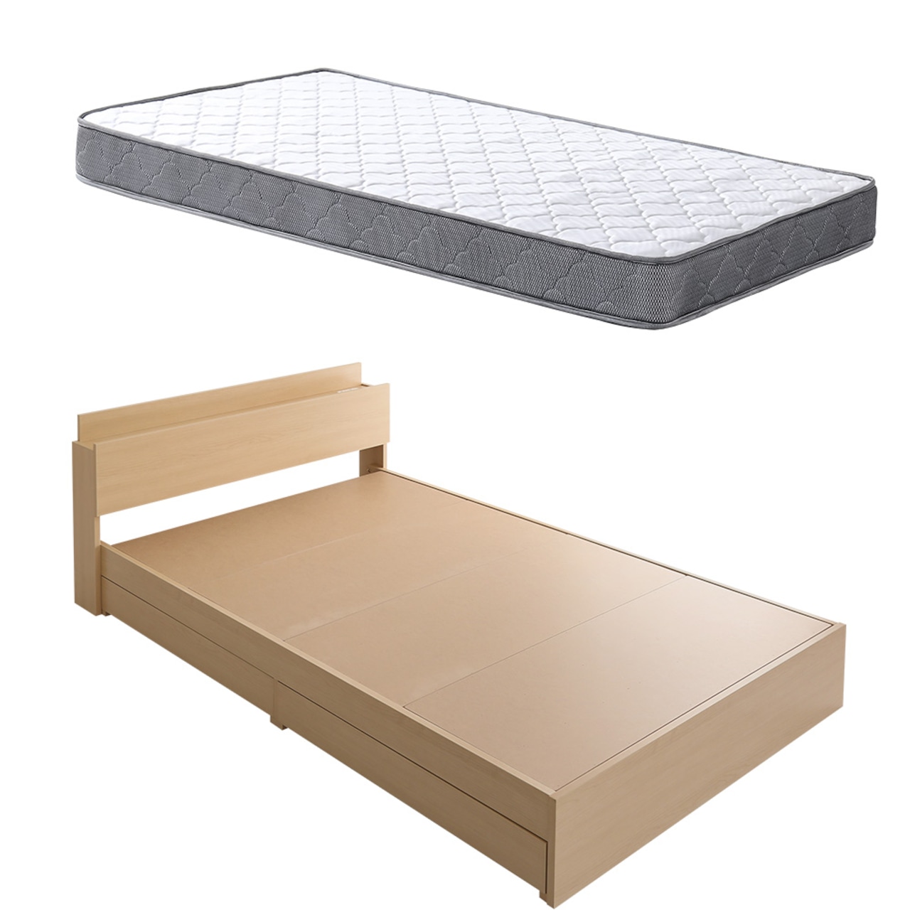 チェストベッド ボンネルコイルマットレスセット (ダブル) 木目調 ウォールナット色 全4色 宮付 棚・コンセント付き 引出し収納ベッド 抗菌・防臭