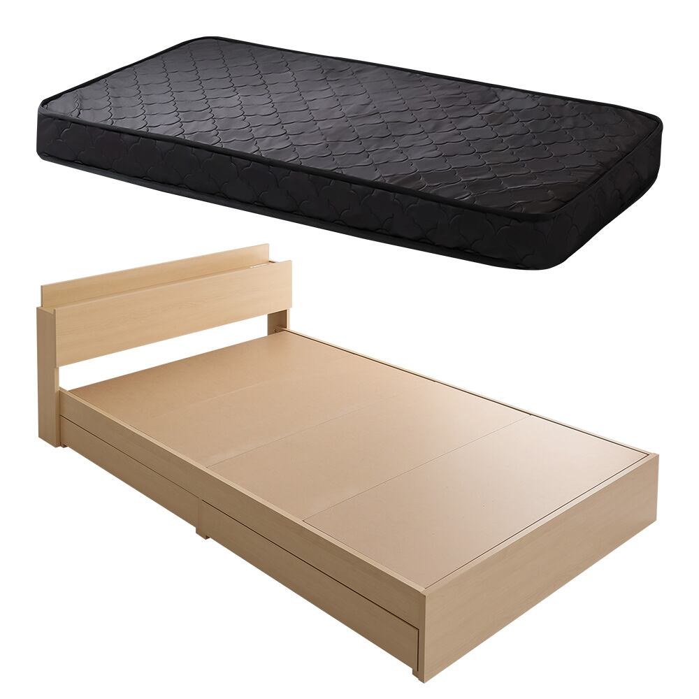 チェストベッド ポケットコイルマットレスセット (セミダブル) 木目調 ブラックオーク 色 全4色 宮付 棚・コンセント付き 引出し収納ベッド 抗菌・防臭