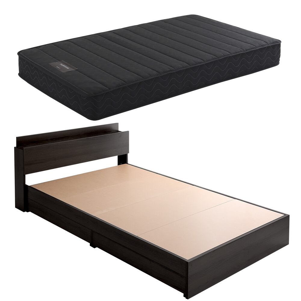 チェストベッド 日本製ポケットコイルマットレスセット (ダブル) 木目調 ブラックオーク 色 全4色 宮付 棚・コンセント付き 引出し収納ベッド 抗菌・防臭