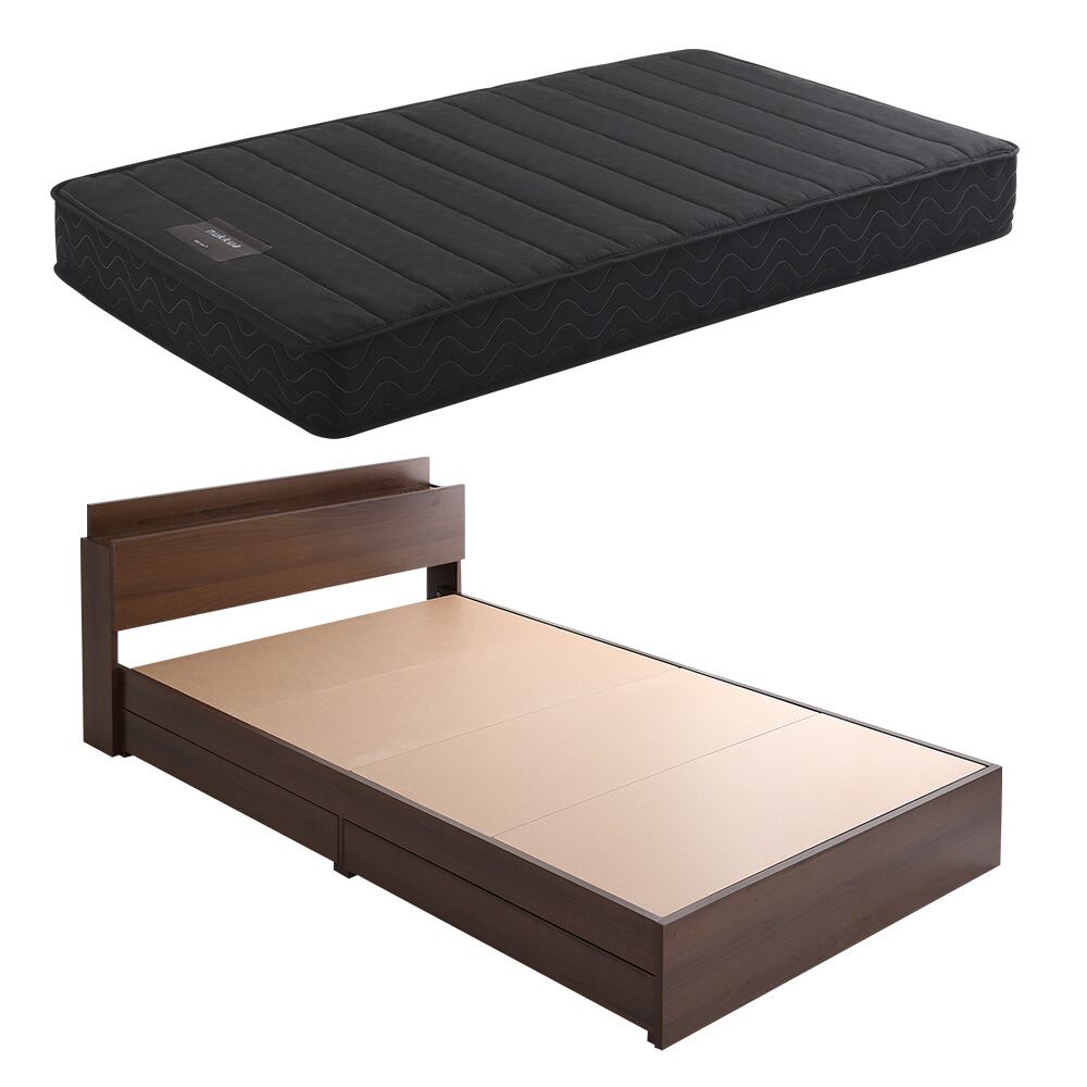 チェストベッド 日本製ポケットコイルマットレスセット (ダブル) 木目調 ブラックオーク 色 全4色 宮付 棚・コンセント付き 引出し収納ベッド 抗菌・防臭