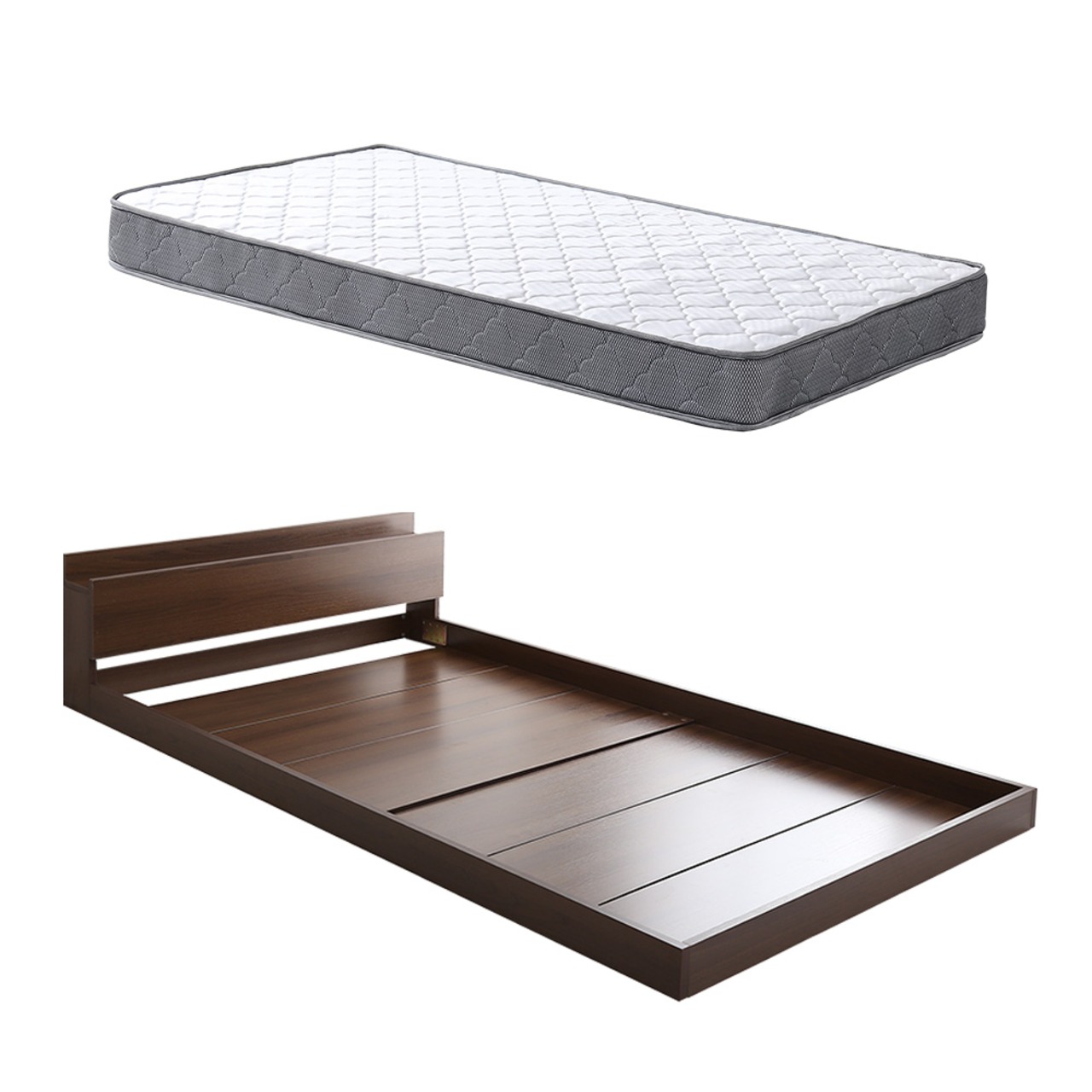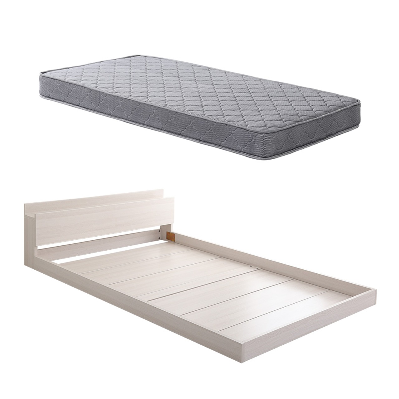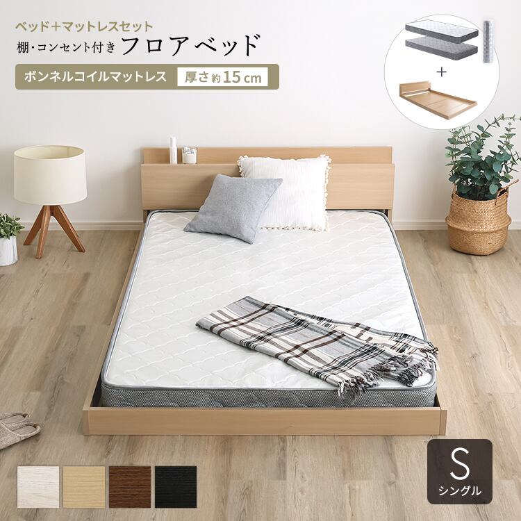 フロアベッド ボンネルコイルマットレスセット (シングル) ローベッド 木目調 オーク色 全4色 宮付 棚・コンセント付き 抗菌・防臭
