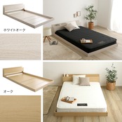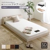 フロアベッド 日本製ポケットコイルマットレスセット (セミダブル) ローベッド 木目調 ホワイトオーク色 全4色 宮付 棚・コンセント付き 抗菌・防臭