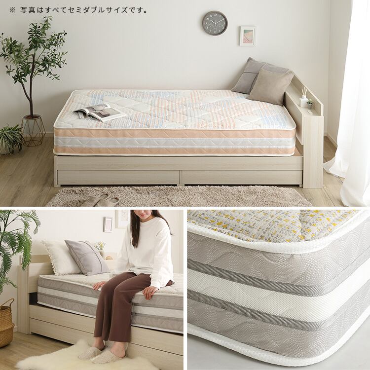 マット中材:ポケットコイル、ウレタン、不織布、防ダニ抗菌綿