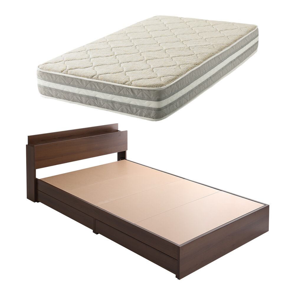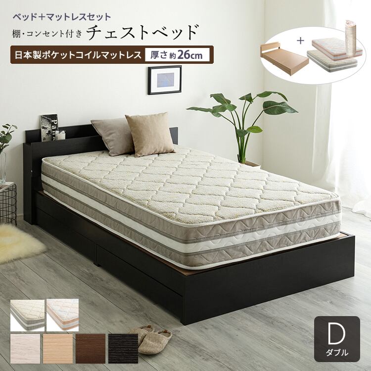 チェストベッド 日本製ポケットコイルマットレスセット (ダブル) 木目調 ブラックオーク色 全4色 宮付 棚・コンセント付き 引出し収納ベッド 抗菌・防臭