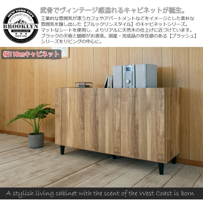 キャビネット幅118cm 完成品 日本製 ナチュラル ヴィンテージ 木製 収納棚 リビング 収納 棚 おしゃれ 扉付き リビングボード テレビボード