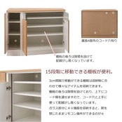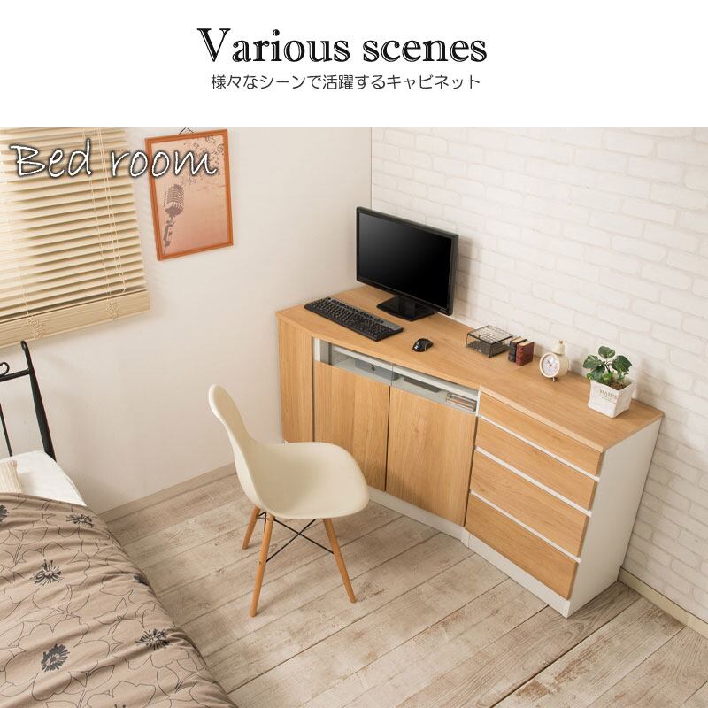 4段チェストやガラスと一体化したコーナーキャビネット、引出し付きキャビネットなどシンプルながら機能性もしっかりと装備し、リビングボードとして、TVボードとして、またキッチンカウンターとして様々な使い方が可能。