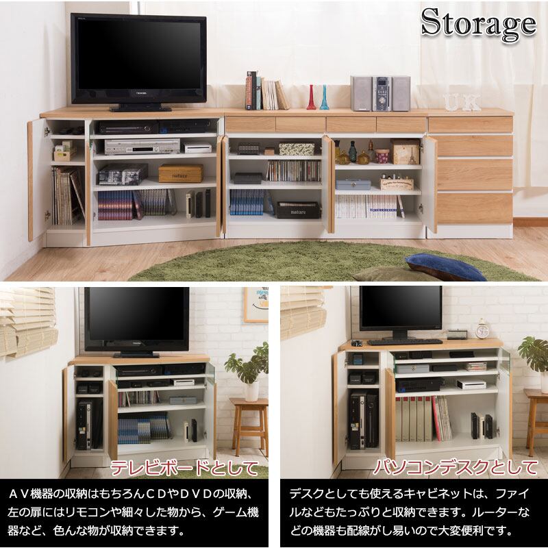 コーナーテレビボード 幅99.5cm 左壁付けタイプ 日本製 完成品 ナチュラル ホワイト CLFR