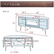 幅120×奥行45.5×高さ57(脚部21含む)cm