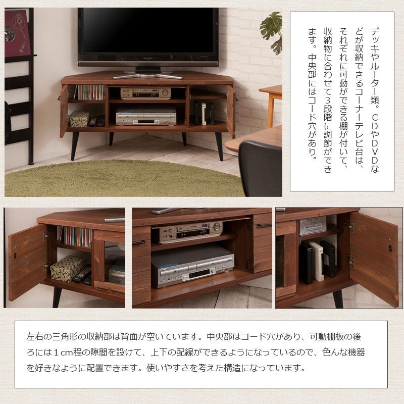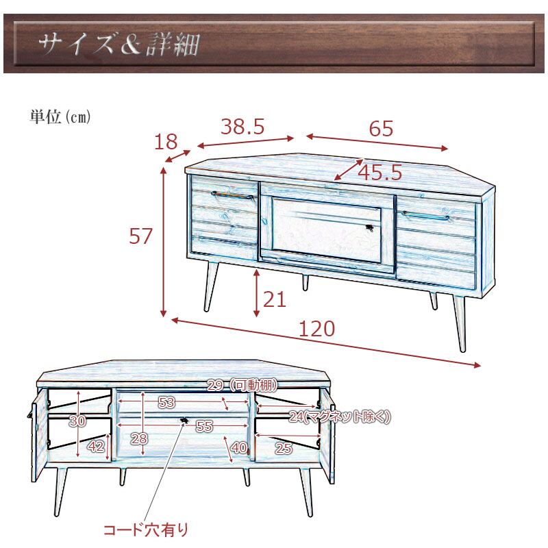 コーナーテレビ台 TVボード 幅120cm 日本製 完成品 天然木 西海岸インテリア