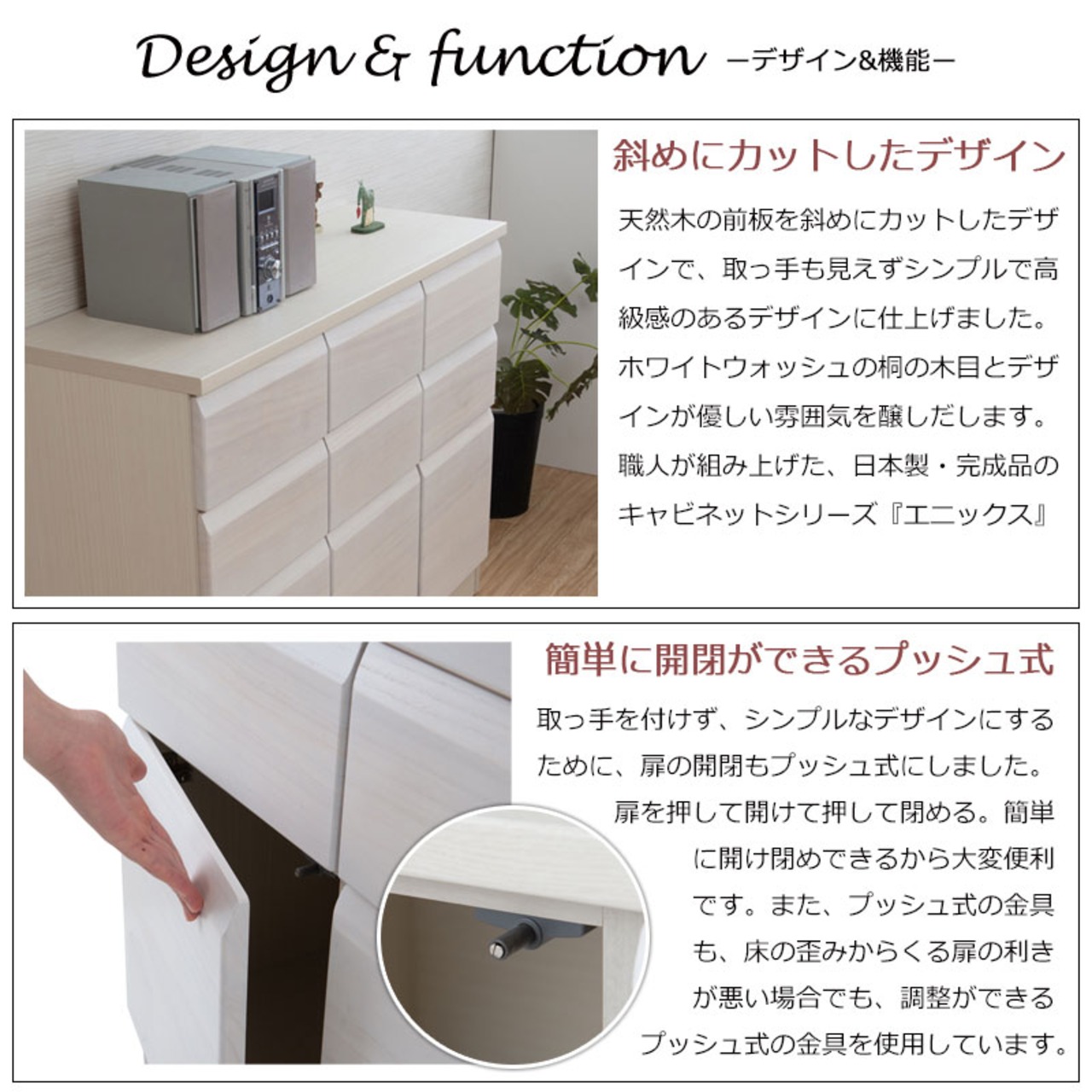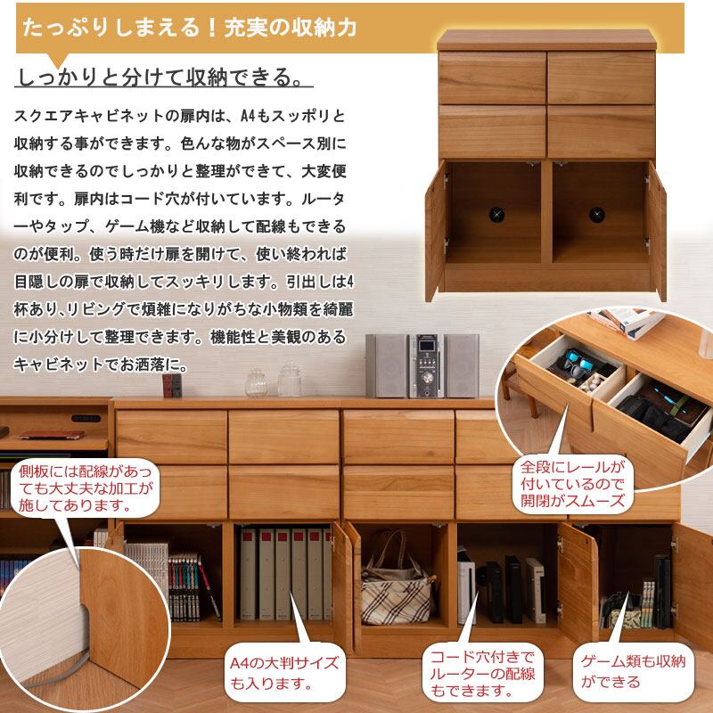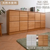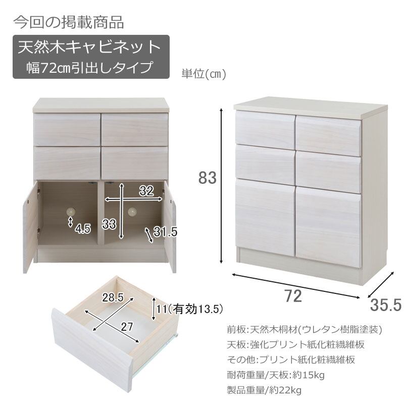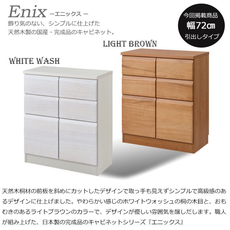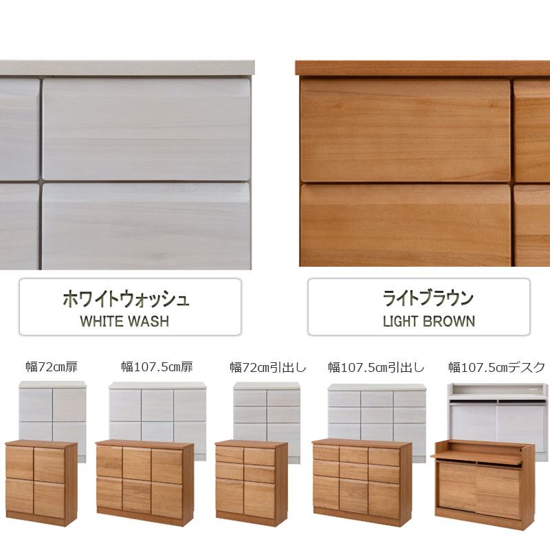 キャビネット 天然木桐材使用 日本製 完成品 幅72 スクエア 扉+引出しタイプ ホワイトウォッシュ ライトブラウン プッシュ式 扉付リビング収納 木製 SQUARE