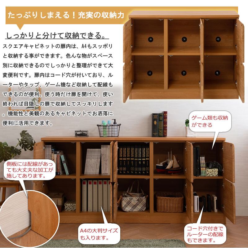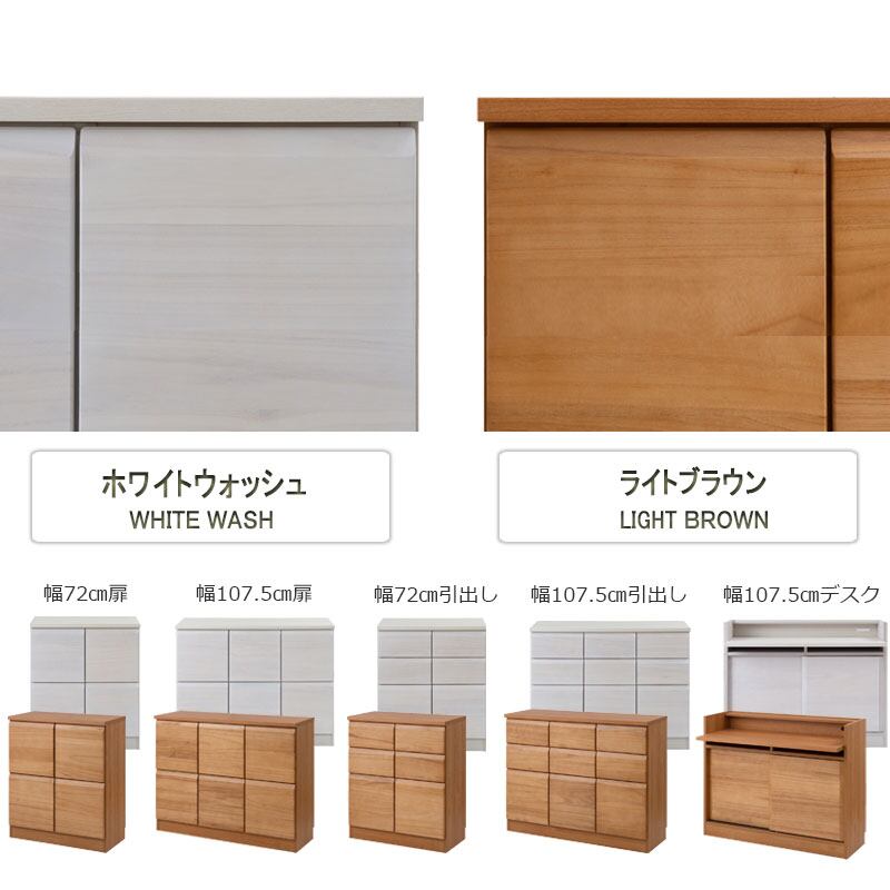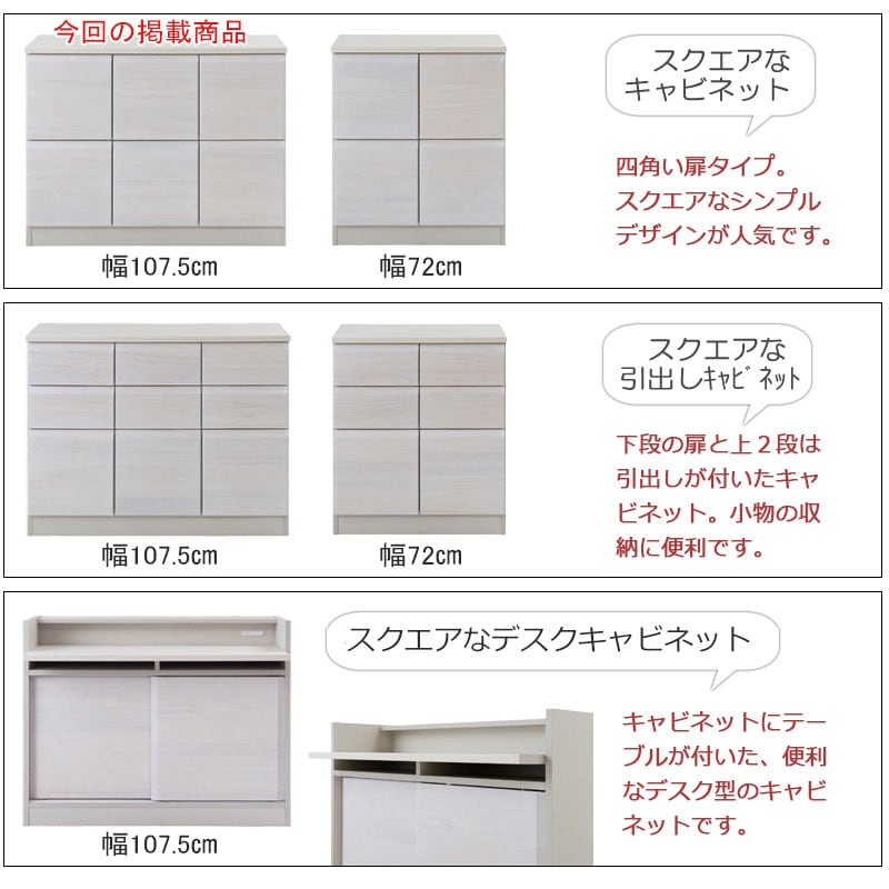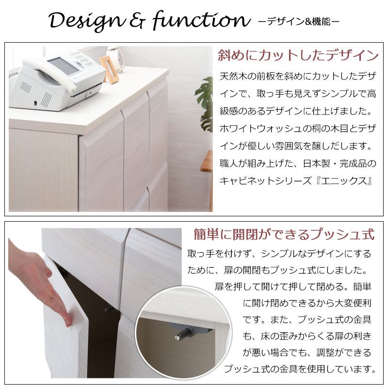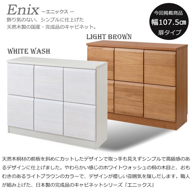 キャビネット 天然木桐材使用 日本製 完成品 幅107.5 スクエア 扉タイプ ホワイトウォッシュ ライトブラウン プッシュ式 扉付 リビング収納 木製 SQUARE