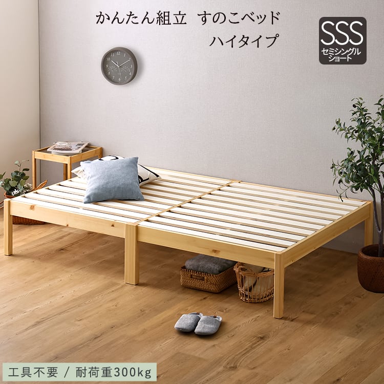 ベッド すのこ 天然木 ハイタイプ かんたん組立 (セミシングルショート) ナチュラル 頑丈 通気性 TRS