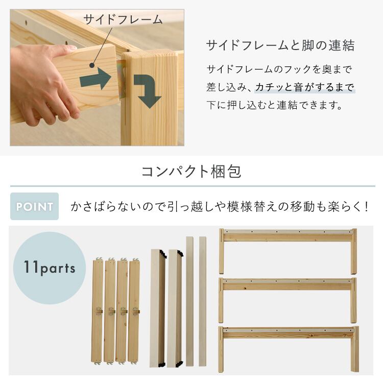 工具不要で2分で完成、組立簡単ベッド ハイタイプ。