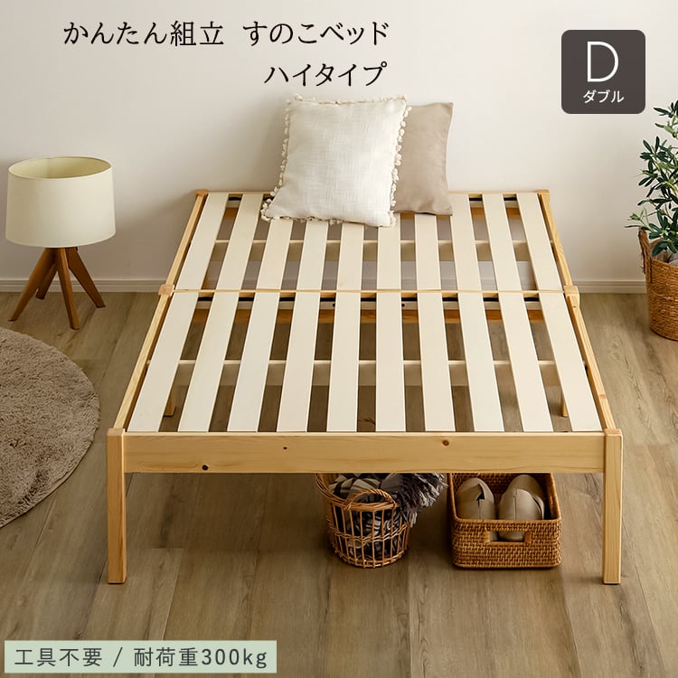 ベッド すのこ 天然木 ハイタイプ かんたん組立 (ダブル) ナチュラル 頑丈 通気性 TRS