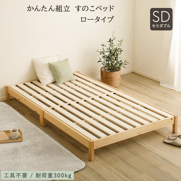 ベッド すのこ 天然木 ロータイプ かんたん組立 (セミダブル) ナチュラル 頑丈 通気性 TRS