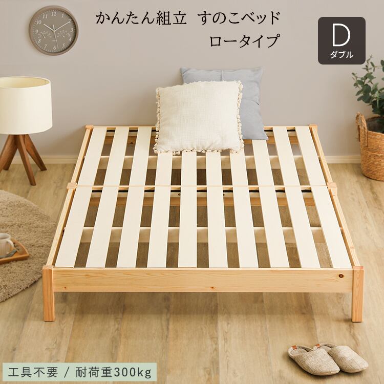 ベッド すのこ 天然木 ロータイプ かんたん組立 (ダブル) ナチュラル 頑丈 通気性 TRS