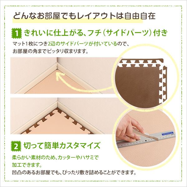 ジョイントマット 64枚セット(大判60cm)12畳分 全8色 サイドバー付 安心の低ホルムアルデヒド、防音、保温 シンプル