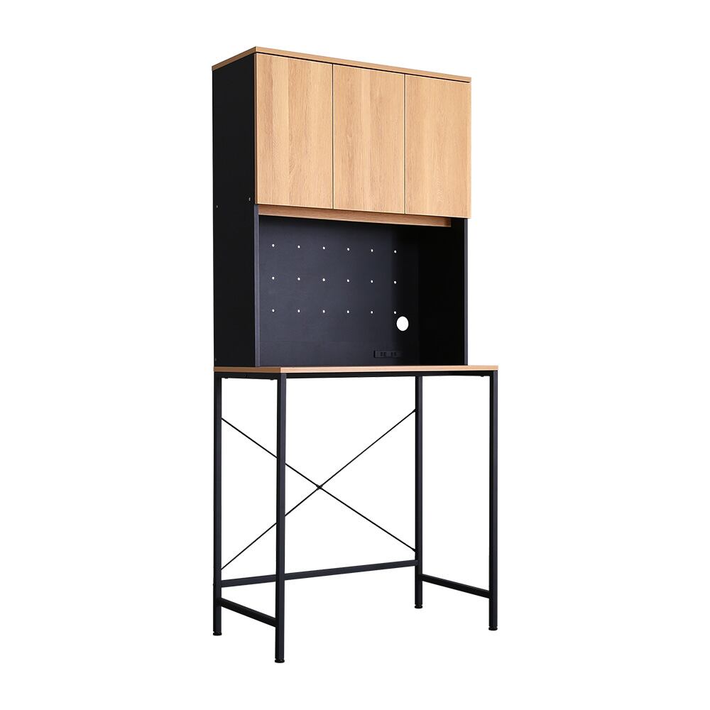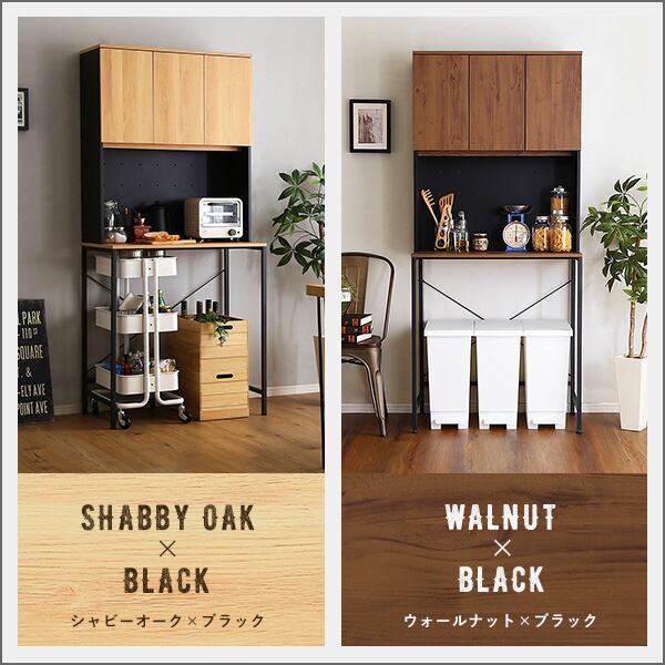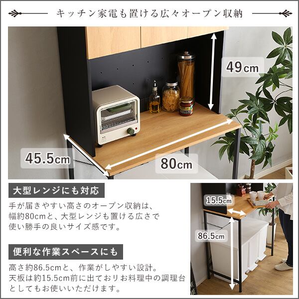 キッチンラック ごみ箱上ラック ヴィンテージ調 食器棚 ワイドタイプ シック シンプル ブラウン色 オーク色