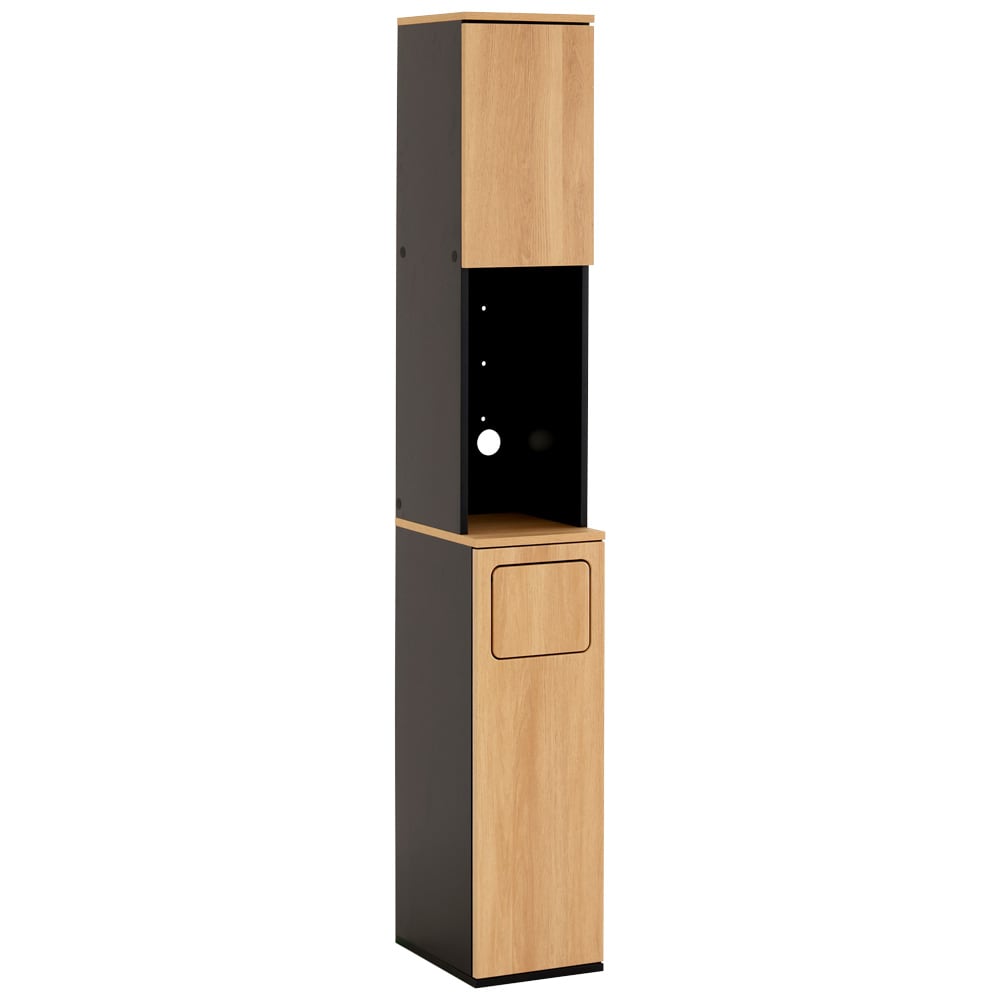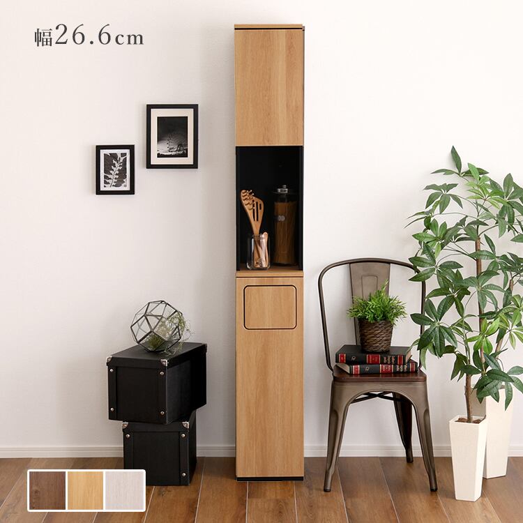 ダストボックス付きキッチンラック 食器棚 レンジ台 省スペース 大容量 45リットル 1か所 ゴミ箱上 おしゃれ スキマ 木目柄 ブラウン色 オーク色 ヴィンテージ調