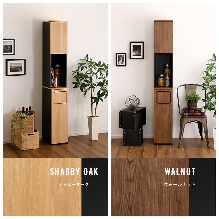 ヴィンテージテイストのごみ箱が一体型になった食器棚。ごみ箱1つタイプ