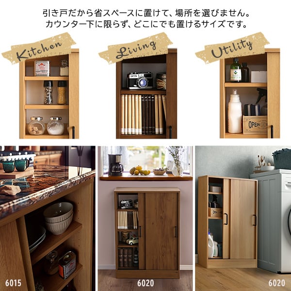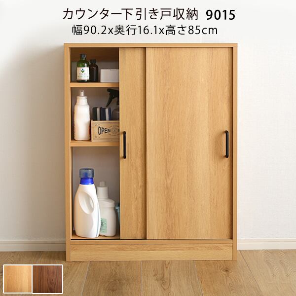 カウンター下引き戸収納 キッチンカウンター 9015 木目調 ブラウン ナチュラル リビング収納 キッチン収納 本棚 食器棚