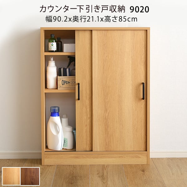 カウンター下引き戸収納 キッチンカウンター 9020 木目調 ブラウン ナチュラル リビング収納 キッチン収納 本棚 食器棚