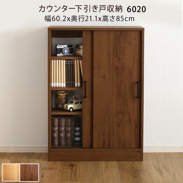 カウンター下引き戸収納 キッチンカウンター 6020 木目調 ウォールナット色 オーク色 リビング収納 キッチン収納 本棚 食器棚