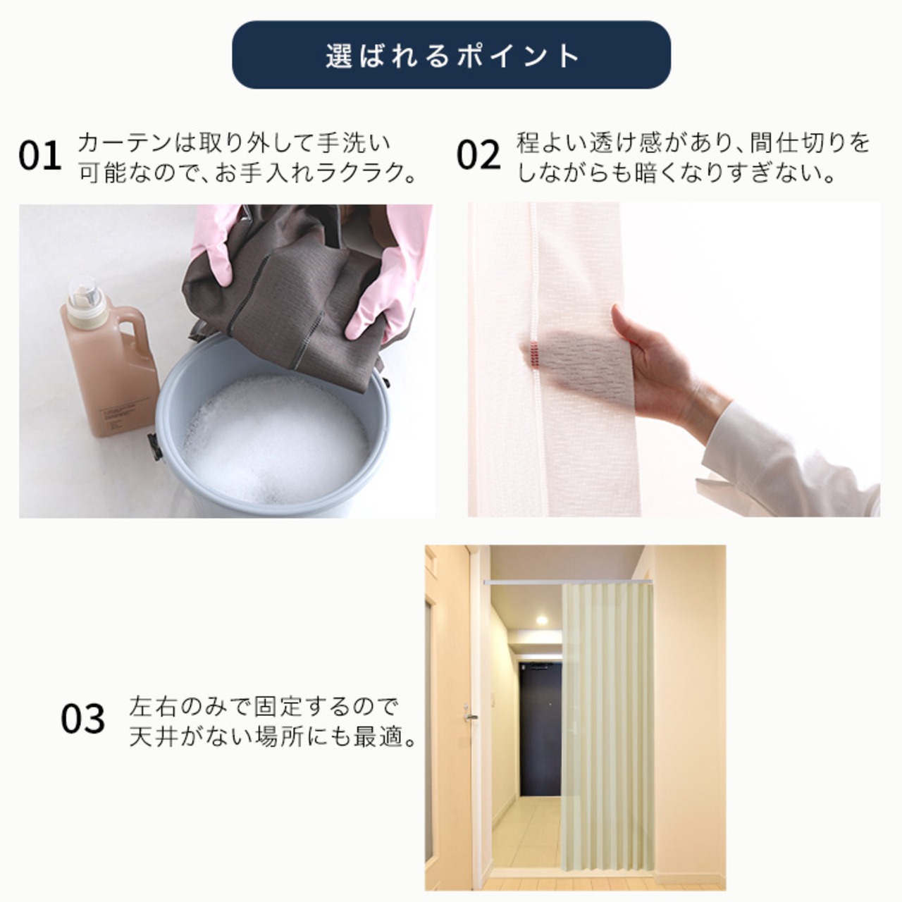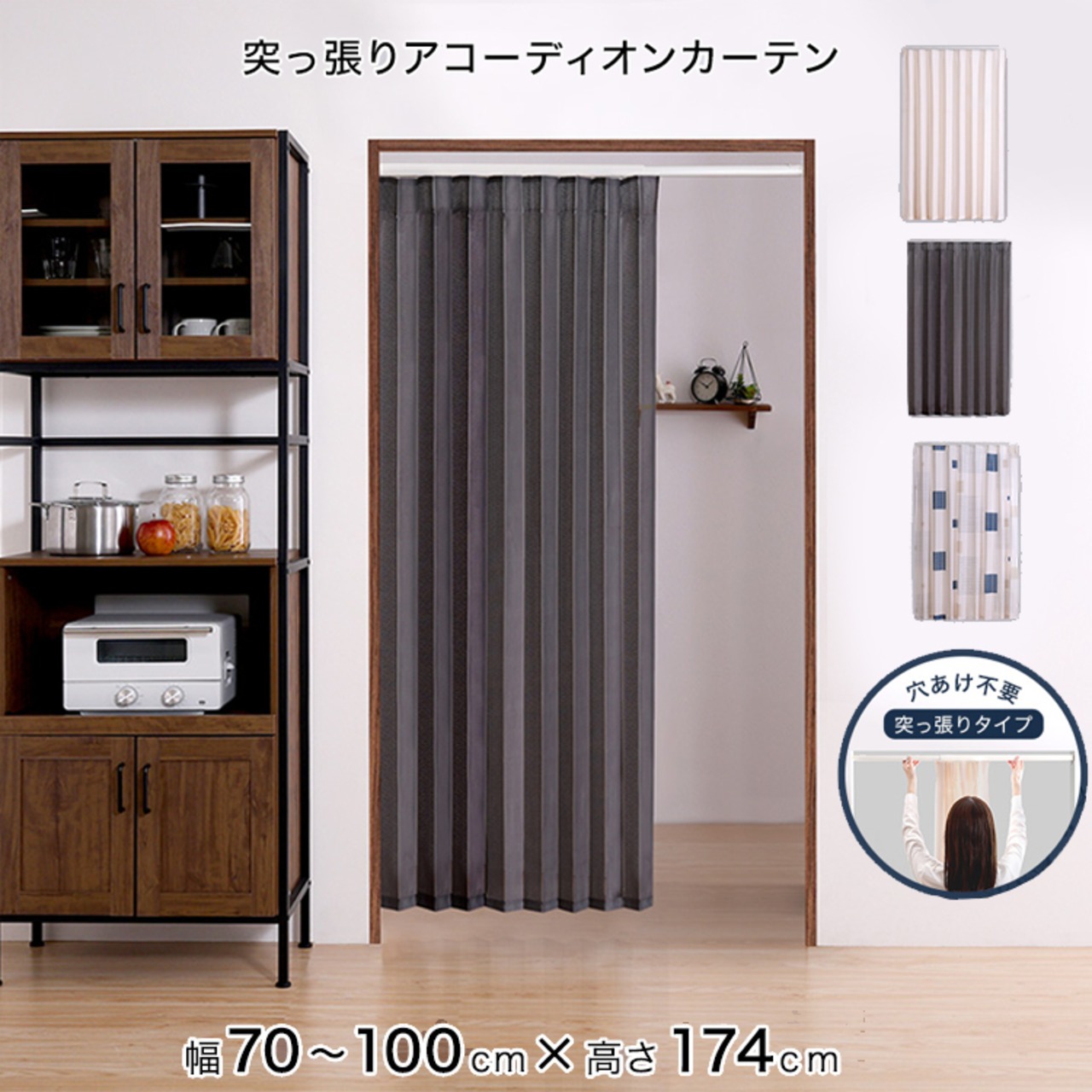 アコーディオンカーテン 100×174cm 簡単取り付け つっぱり式 ファブリック 賃貸OK レールが選べる