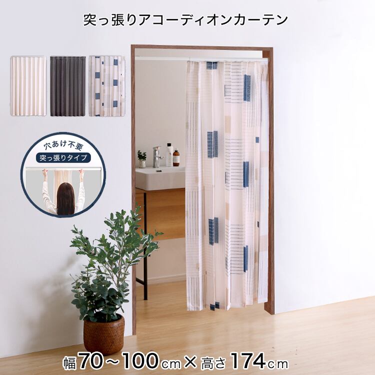 アコーディオンカーテン 100×174cm 簡単取り付け つっぱり式 ファブリック 賃貸OK レールが選べる