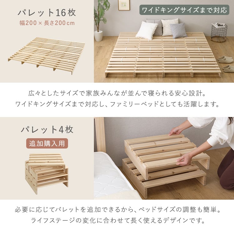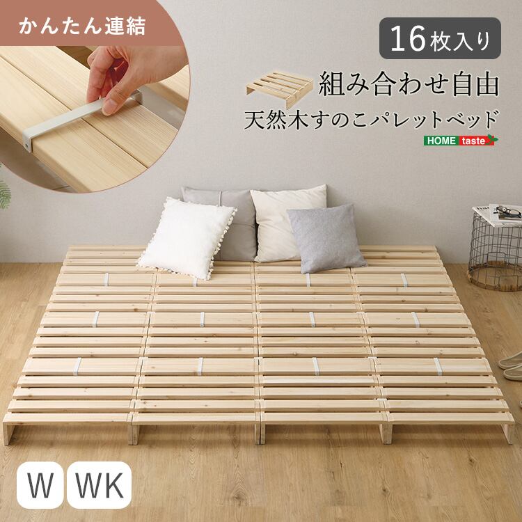 すのこベッド ワイド キング パレットベッド 天然木 16枚セット 組み合わせ自由 ベッドフレーム ローベッド 分割式 通気性 湿気対策 DIY