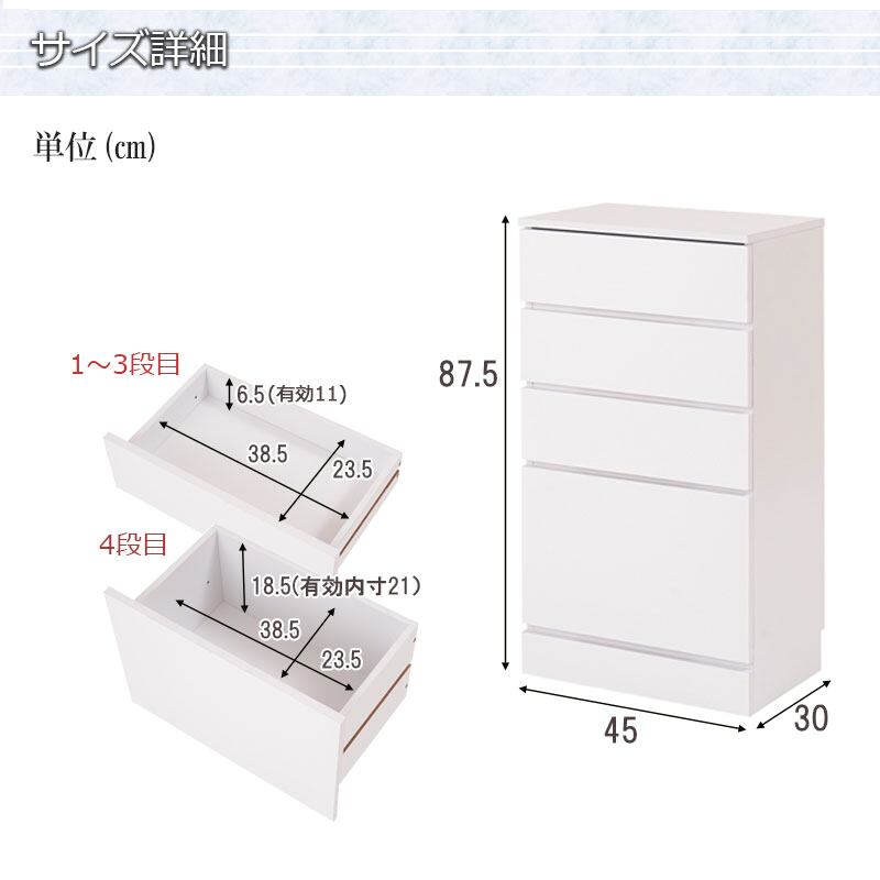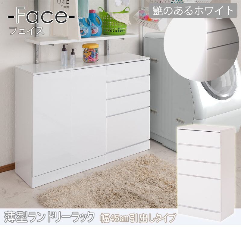 ランドリーチェスト 薄型 幅45cm 引き出し収納 洗面所収納 スリム ランドリー収納 光沢ホワイト色 省スペース 4段 FCE