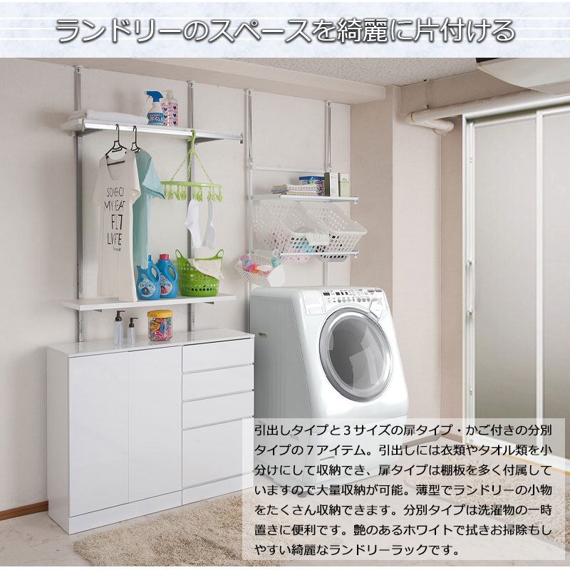 汚れに強く耐久性に優れた光沢ホワイト色仕上げで、洗面所・脱衣所・サニタリールームに違和感なく設置可能。