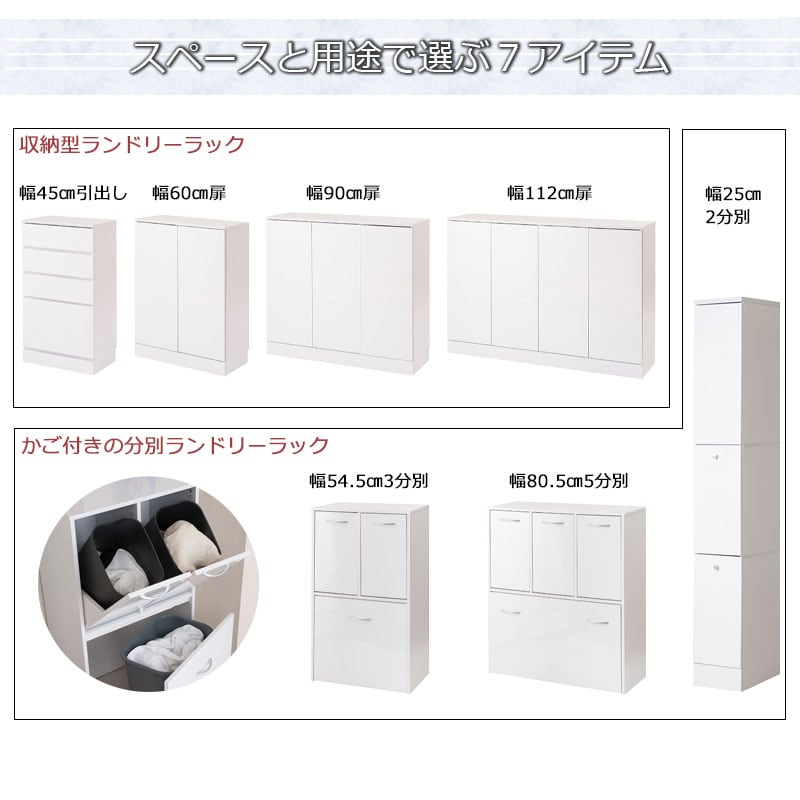 洗面所・脱衣所の収納と洗濯分別を同時に解決出来る薄型ランドリーラック 幅54.5cm。