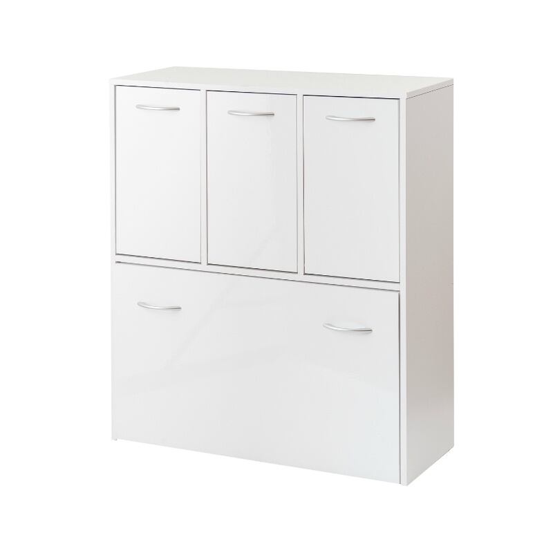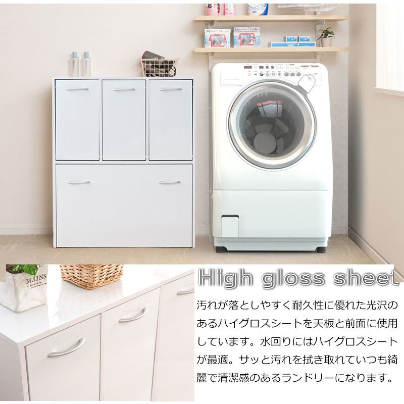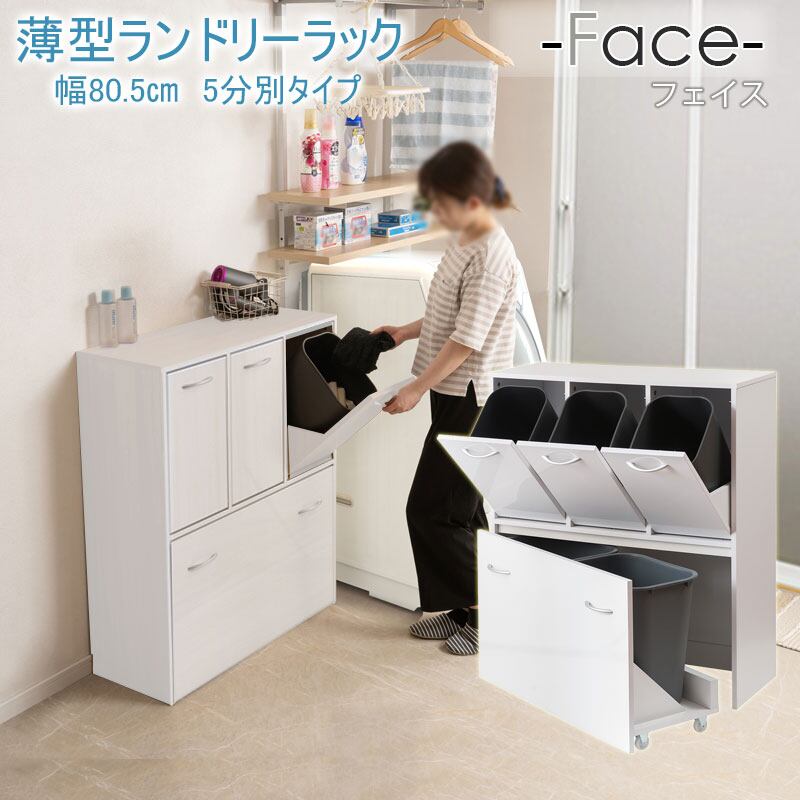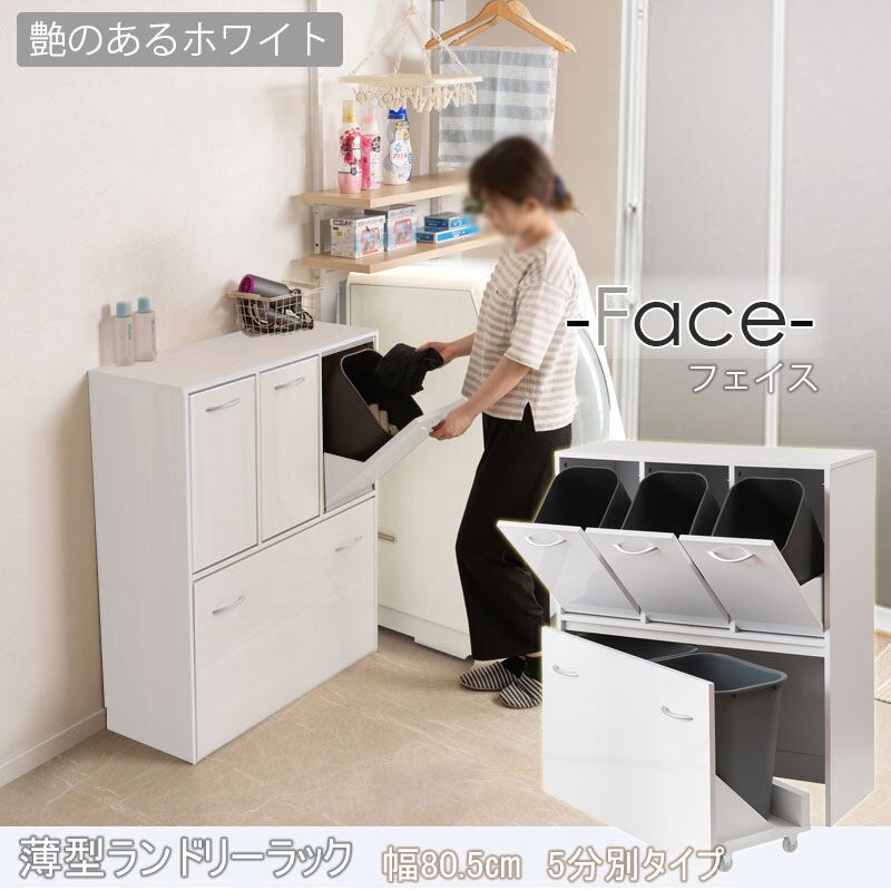 ランドリーラック 薄型 幅80.5cm 5分別 キャスター付き 洗面所収納 脱衣所収納 スリム 光沢ホワイト色 ランドリー収納 FCE