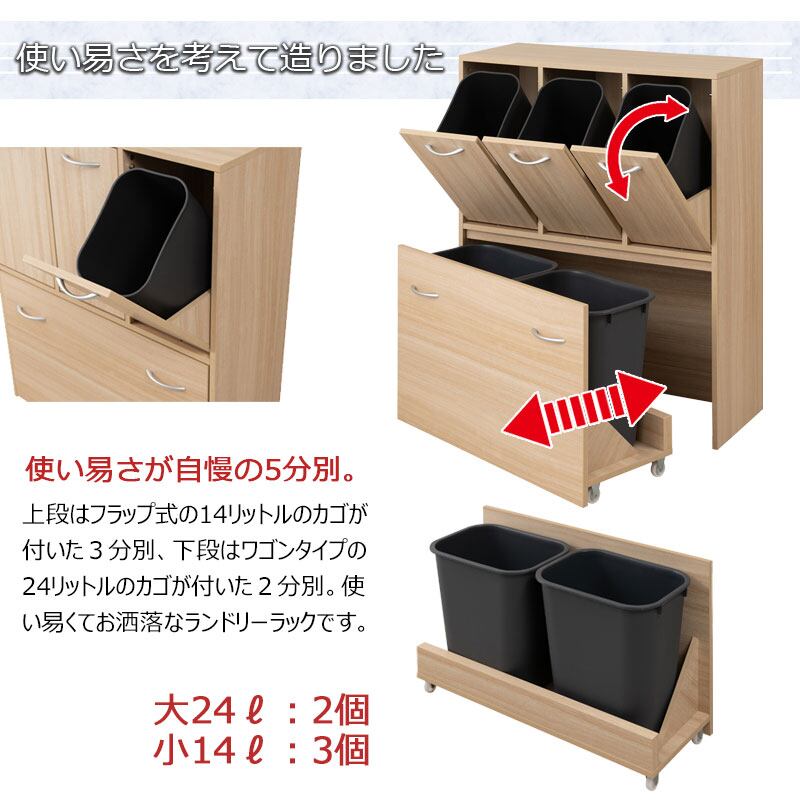 洗濯物を分別しながら収納でき、家事効率を高めます。