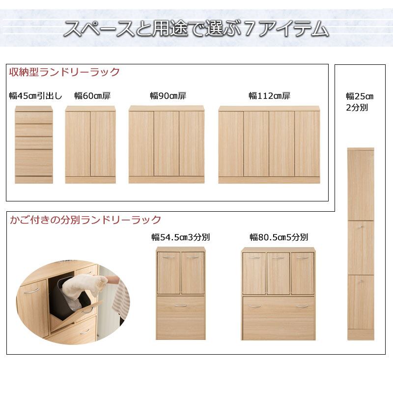 洗面所・脱衣所の収納と洗濯分別を同時に解決出来る薄型ランドリーラック 幅80.5cm。
