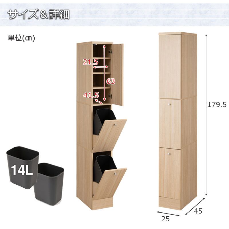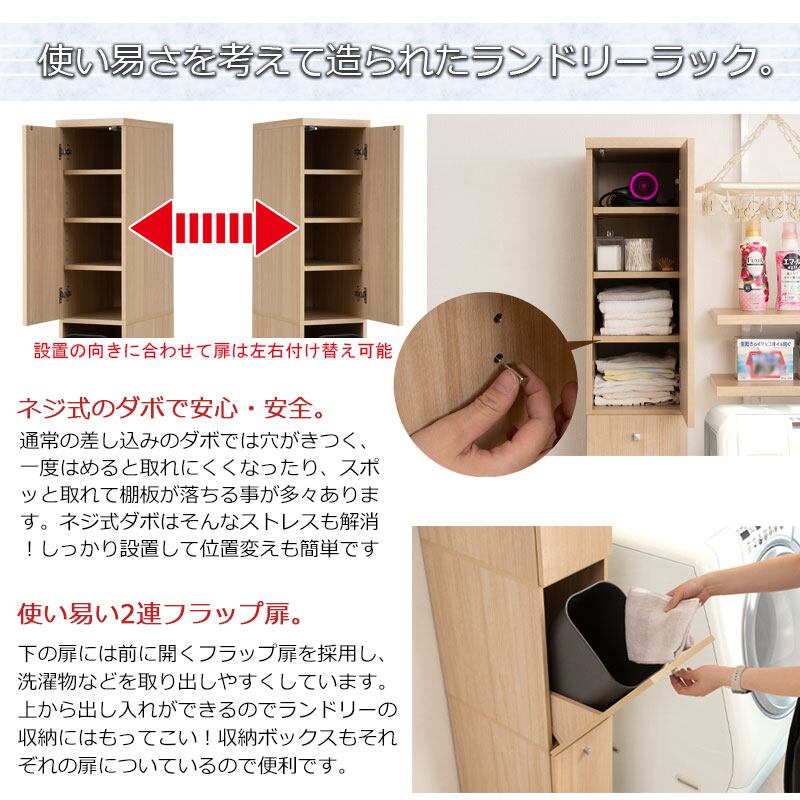 ランドリーラック スリムタワー 薄型 幅80.5cm 可動棚 2分別 ペール付 すきま 洗面所収納 脱衣所収納 スリム 木目調 ランドリー収納 MRINE