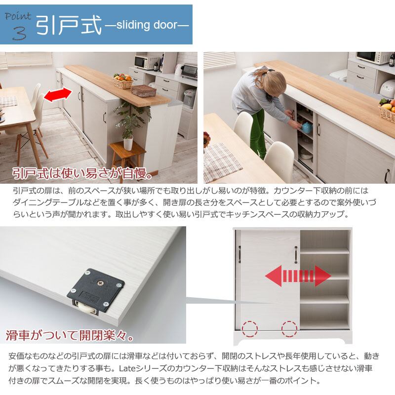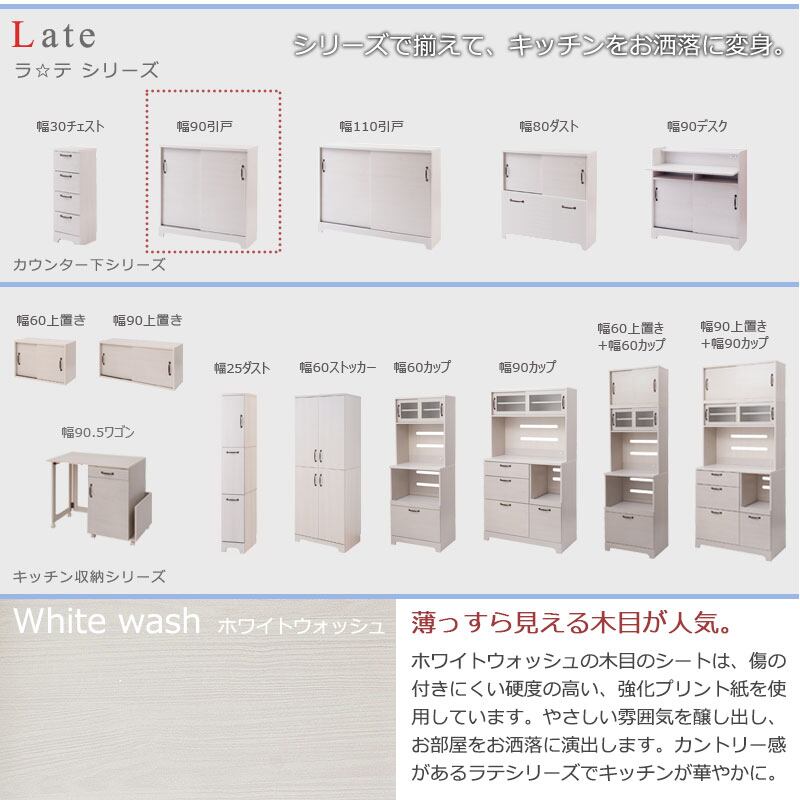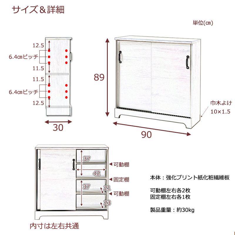 キャビネット カウンター下 引き戸収納 食器棚 本棚 リビング ダイニング 収納 ホワイト 木目色 薄型 省スペース キズつきにくい 幅90