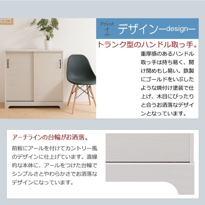 シンプルな中に重厚感あるトランク取っ手、台輪部をアーチ状にくり抜くなど、インテリアになじみやすく、それでいて存在感のある家具をイメージしたカントリーライン。背面化粧仕上げなので、空間の間仕切りにも使えます。