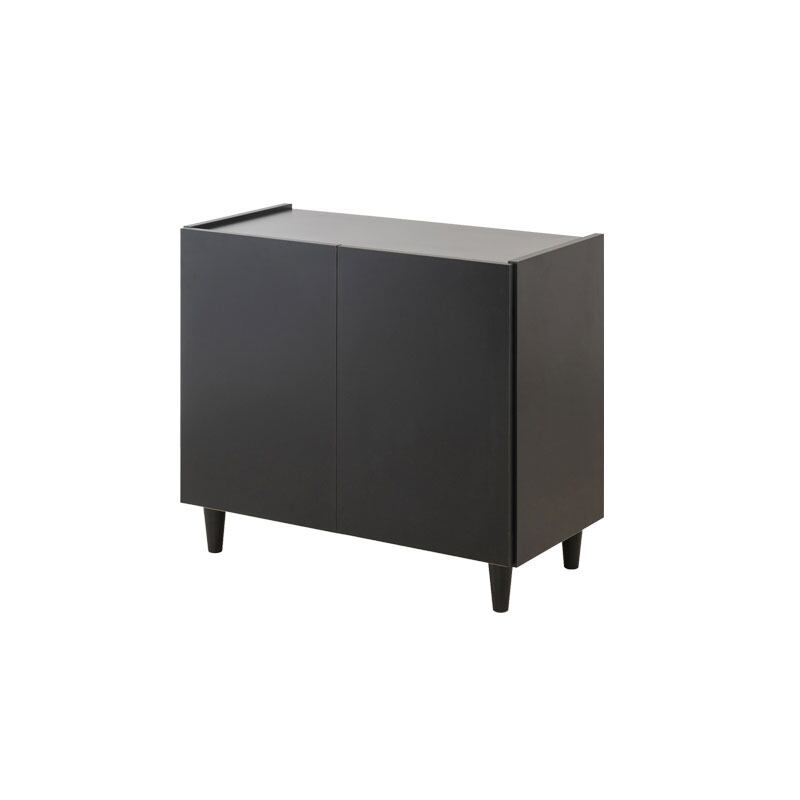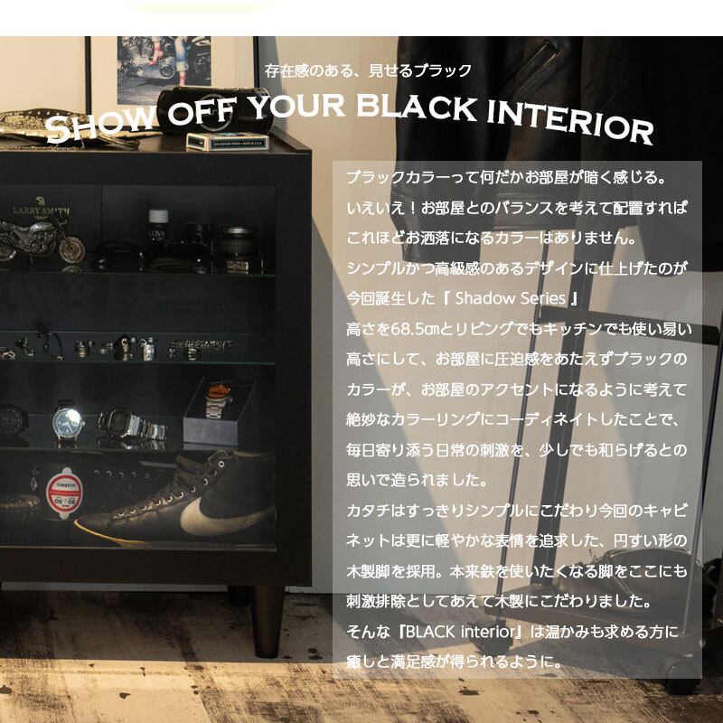 キャビネット リビング 開き戸収納スリム 省スペース マットなブラック色 日本製 国産 完成品 幅80cm SHDOW