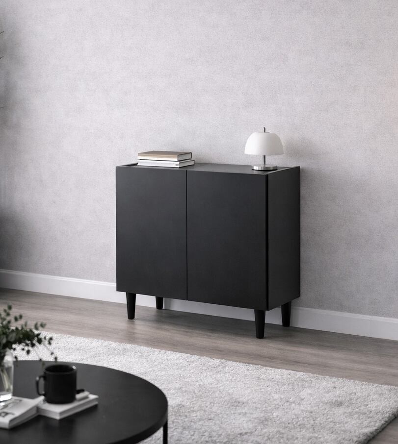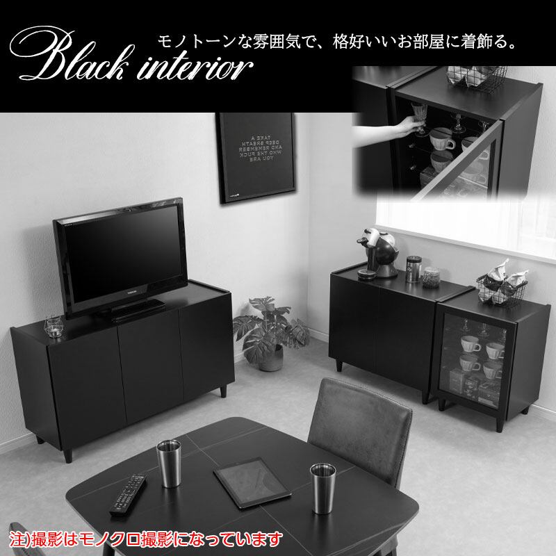 シックな黒色のロータイプキャビネット。リビング収納、カウンター下収納、出窓下収納にもおすすめです。