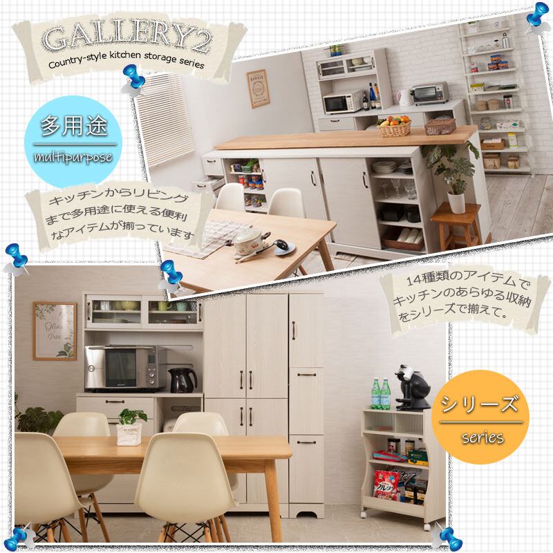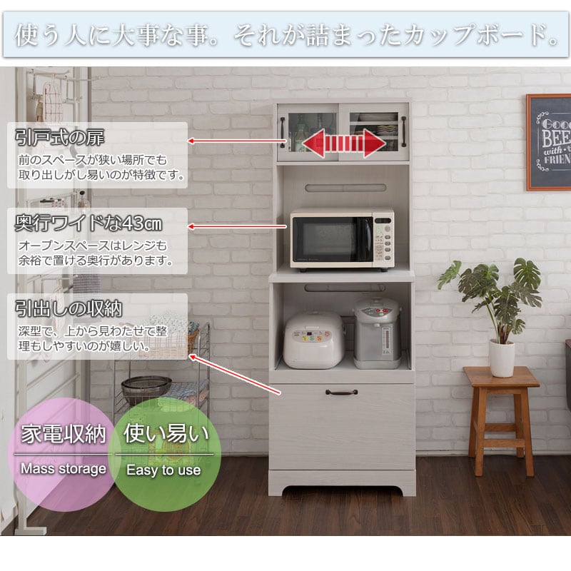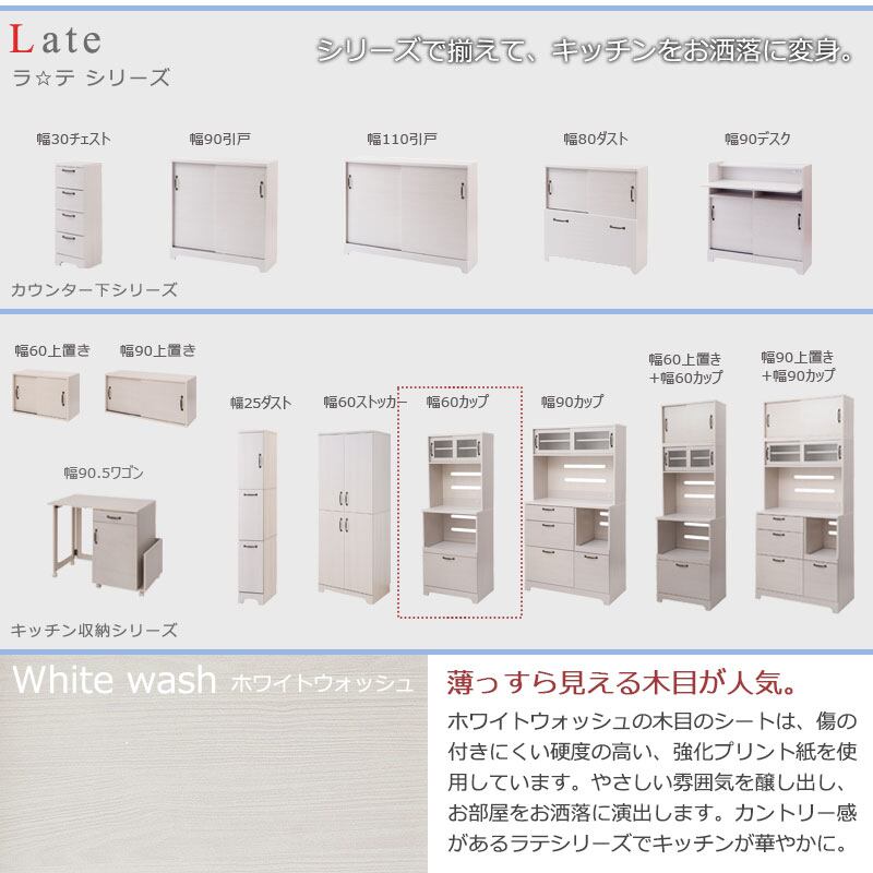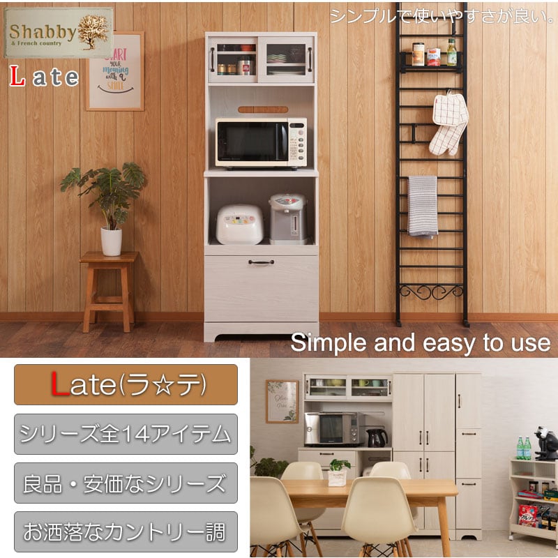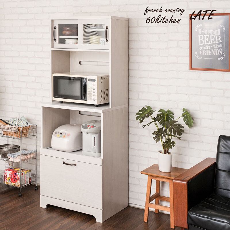 食器棚 60cm幅 レンジ台 ホワイト木目 フレンチカントリー風 キッチンボード 家電収納 引き出し付き LATTE