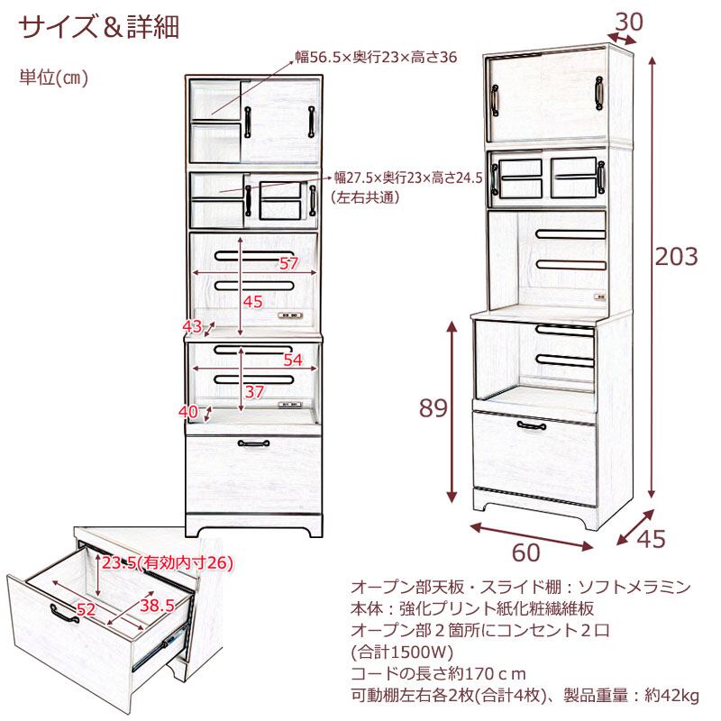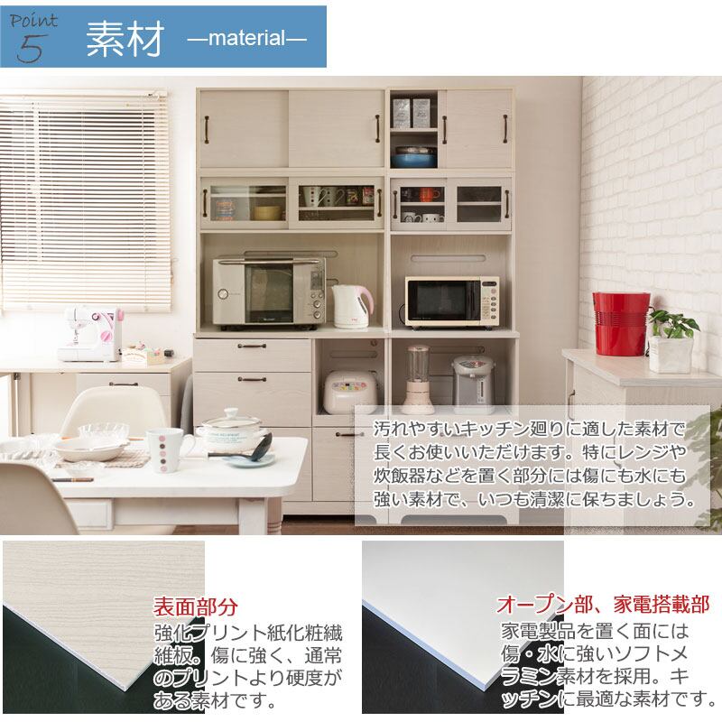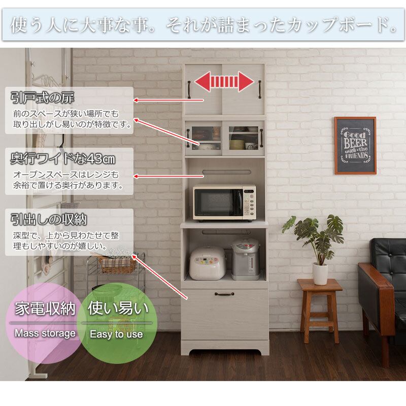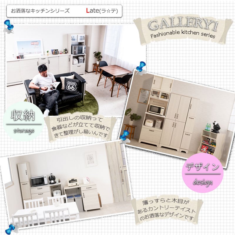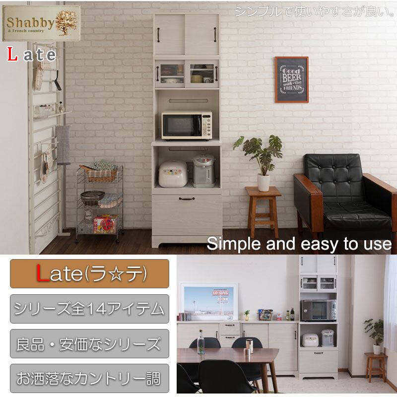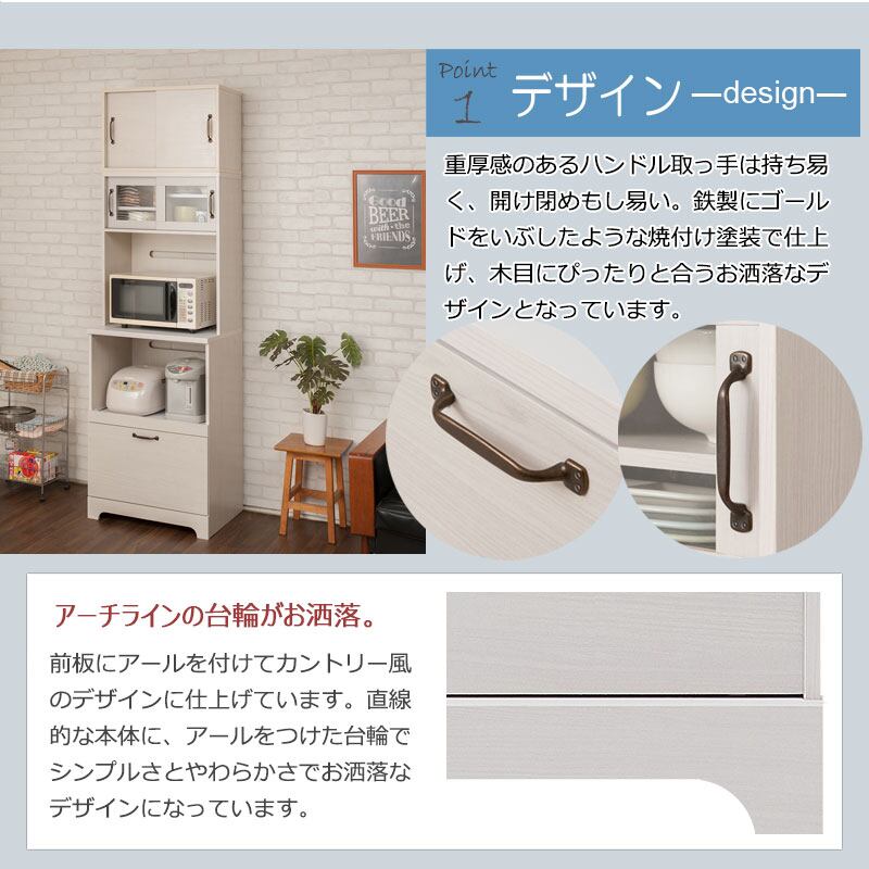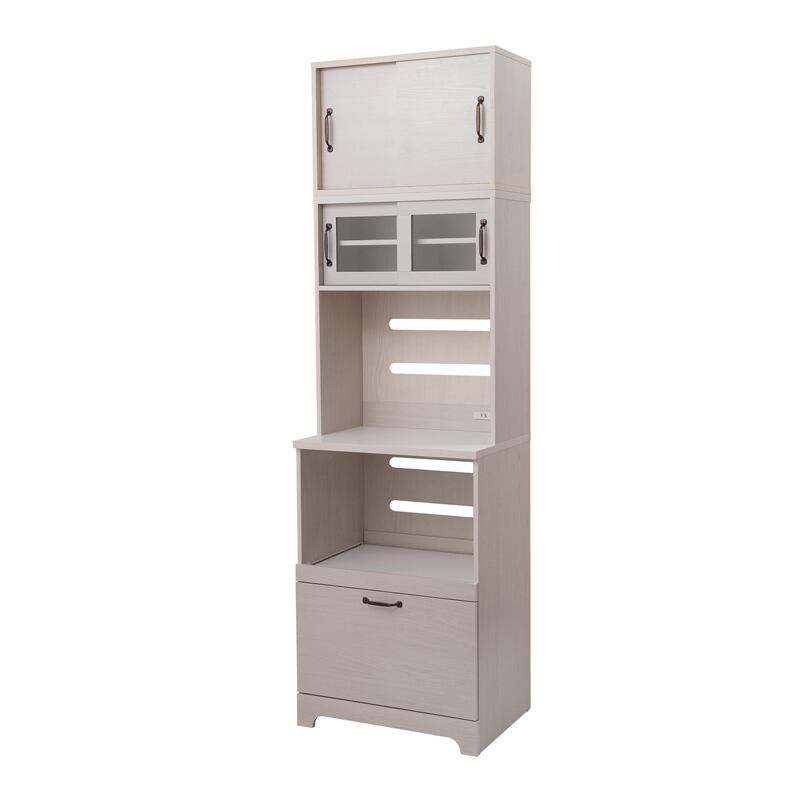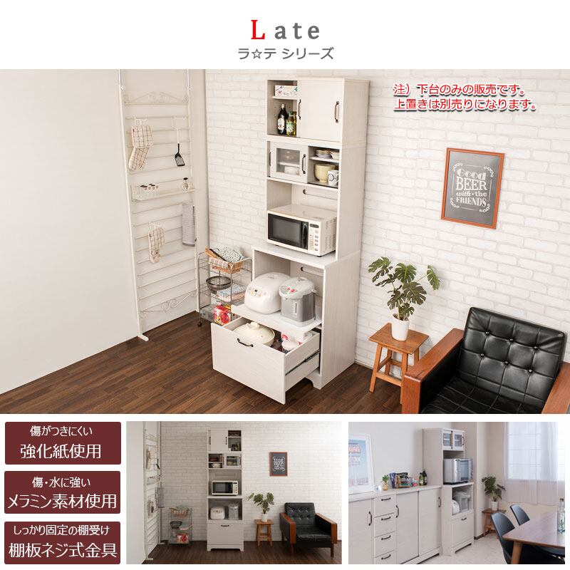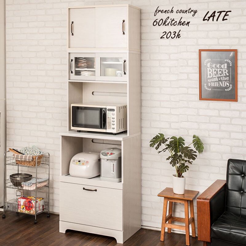 キッチンボード60 キッチン収納 上置き付 レンジ台 食器棚 家電棚 ガラス扉 ホワイト木目色 LATTE